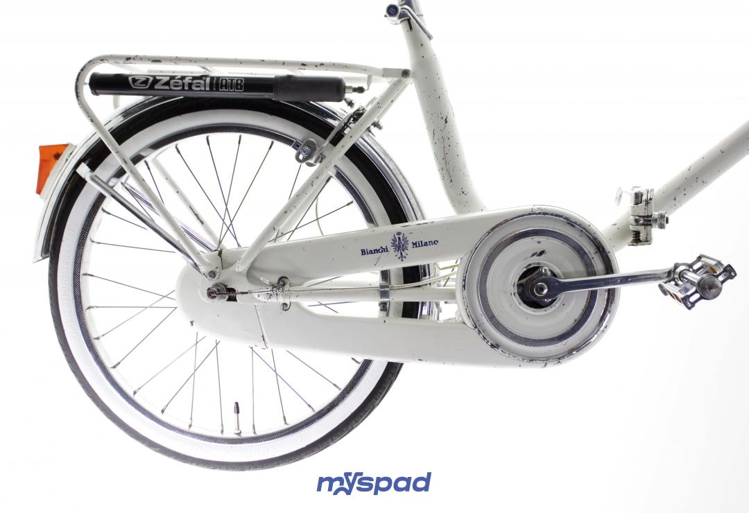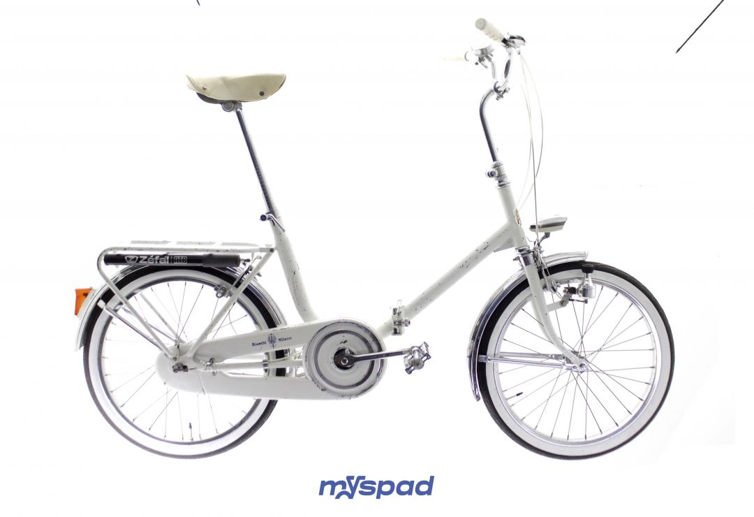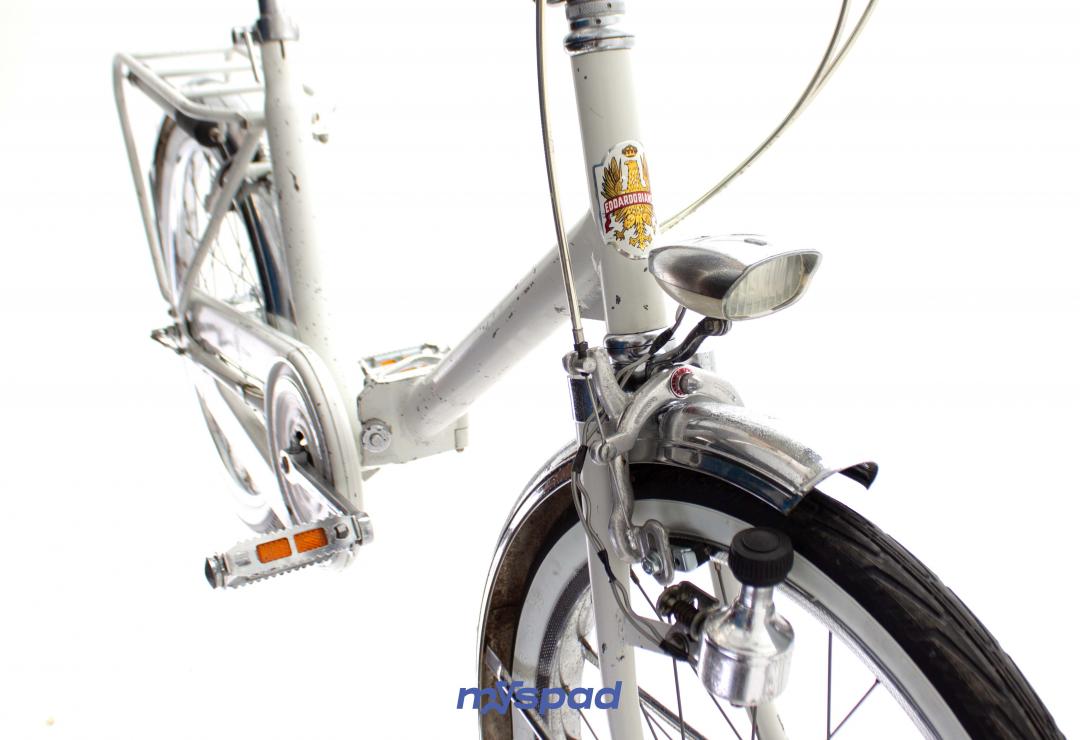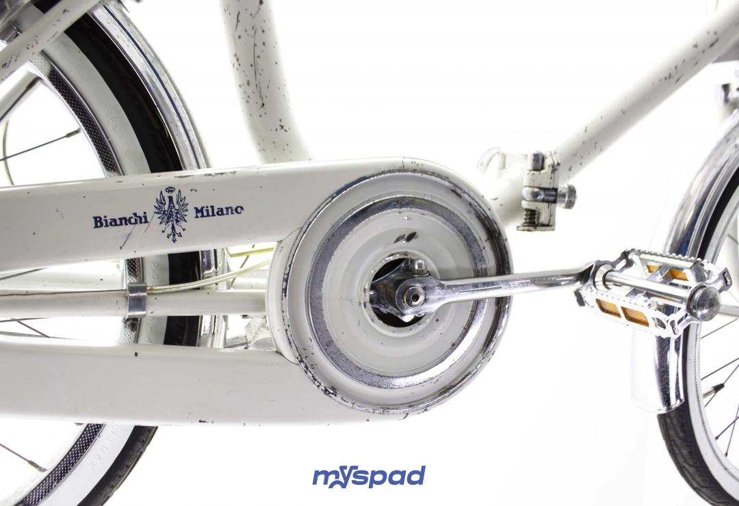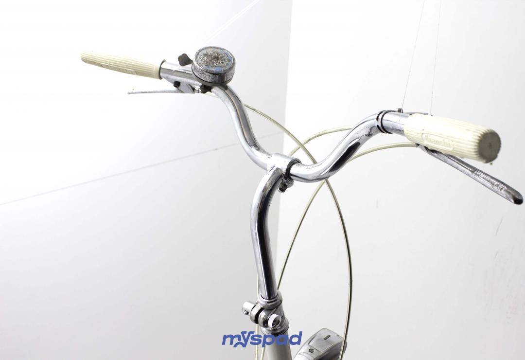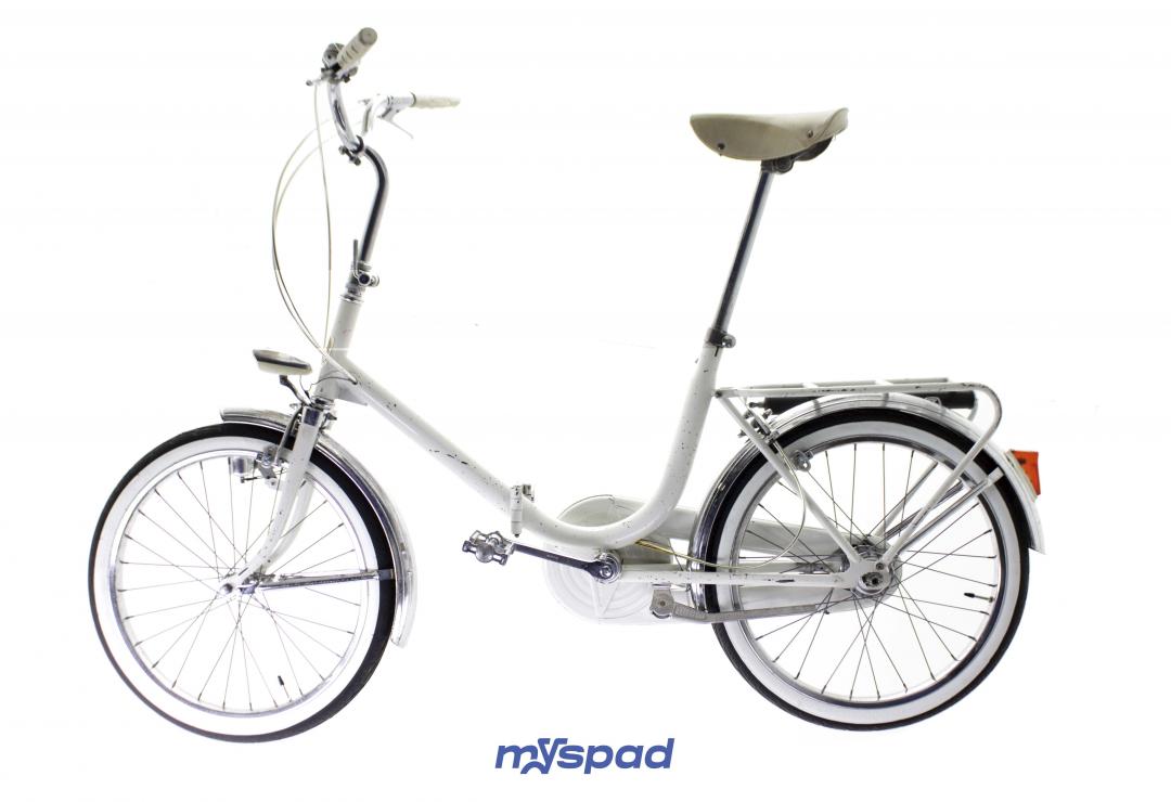Bianchi Pliant Sturmey Archer distribué en France par Solex ou Motobecane (on retrouve des modèles identiques signés des différentes marques) C'est un magnifique vélo vintage, pliant et restauré avec passion par notre mécano (Zak !). Démonté intégralement et restauré pièce par pièce, l'usure de la peinture d'origine (55 ans tout de même) est visible par points et nous l'avons sur ce point volontairement conservé. Toutes les pièces fonctionnement parfaitement comme le moyeu Sturmay à 3 vitesses, la dynamo et ses lumières ou le système pour plier le vélo et baisser la tige de selle et la potence en quelques secondes. Une beauté.