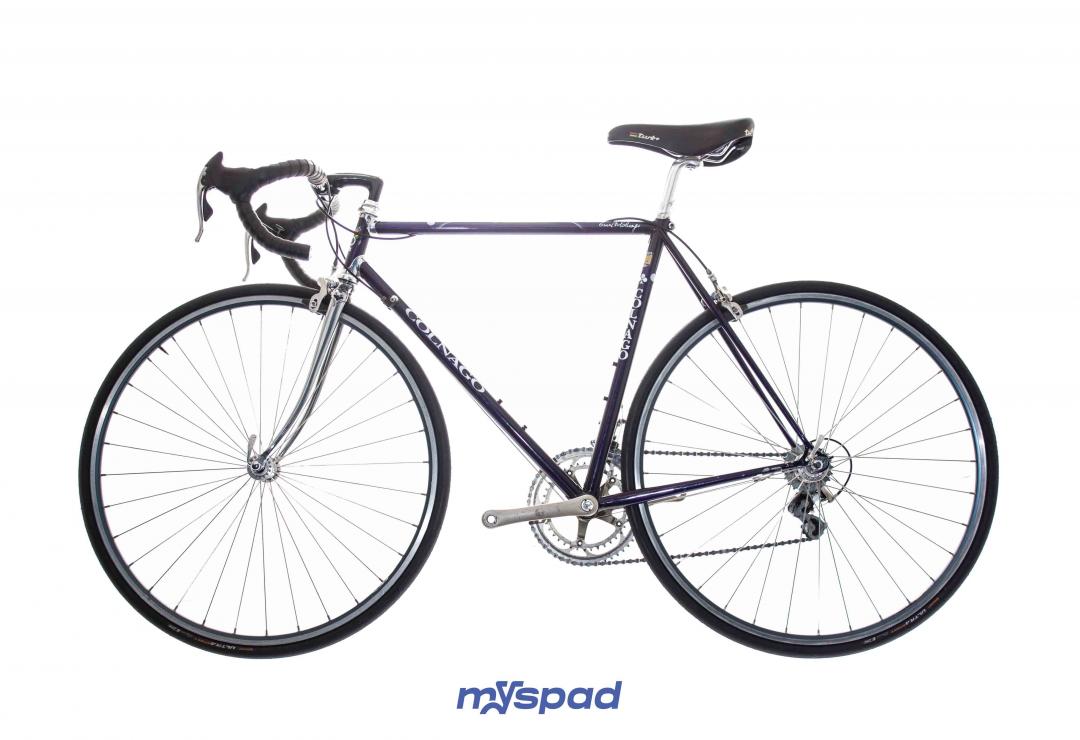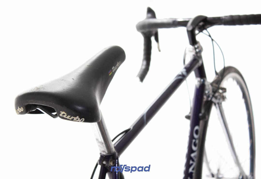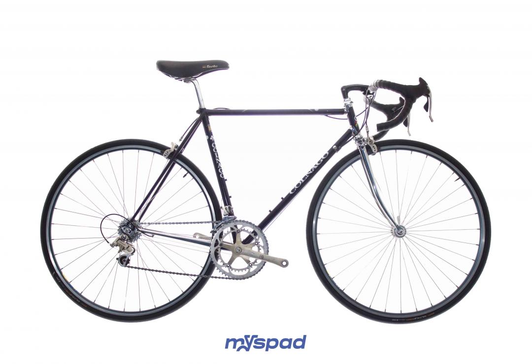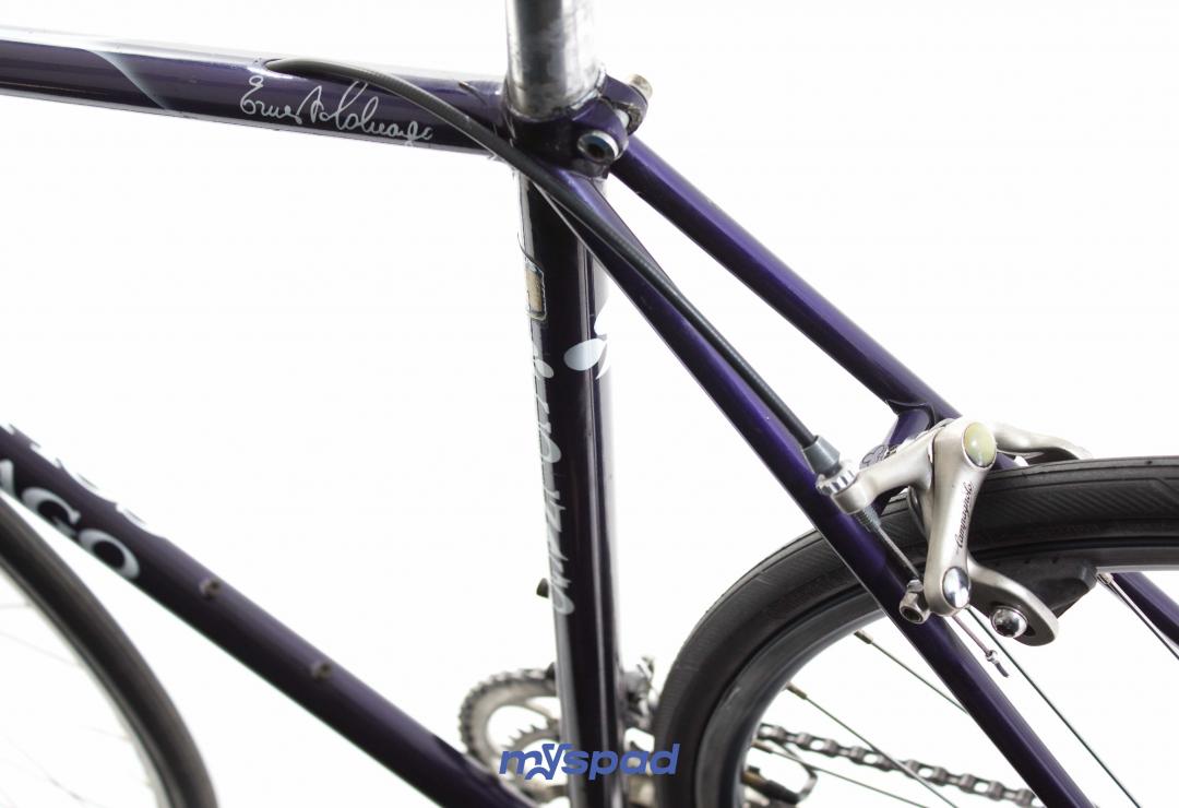 Le Colnago C94, ne figure peut-être pas en tête de gondole des Colnagos, mais reste un vélo de qualité. Son cadre en acier Columbus SL qui privilégie Le confort au poids est en bon état. On retrouve l'exigence de conception de la maison italienne avec de beau raccords chromés au tube de direction et un travail de soudure irréprochable. Si vous chercher à faire des envieux avec une monture à l'aspect de ses premiers jours, arrêtez-vous et laissez-vous séduire.