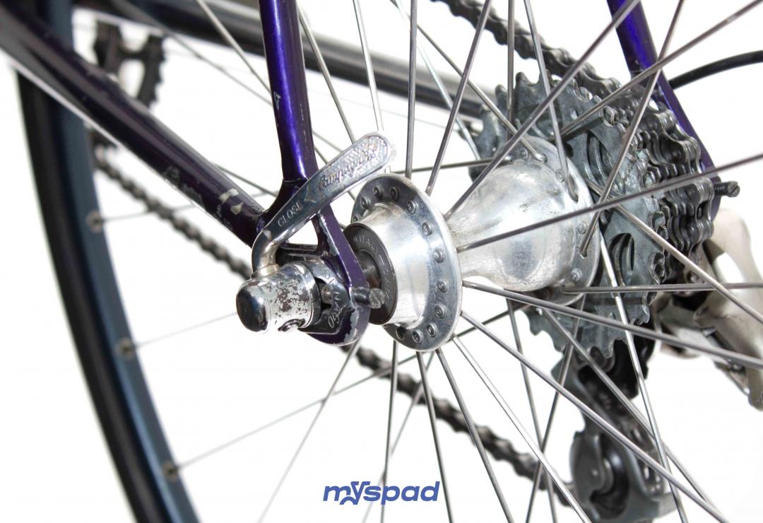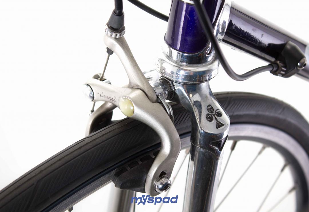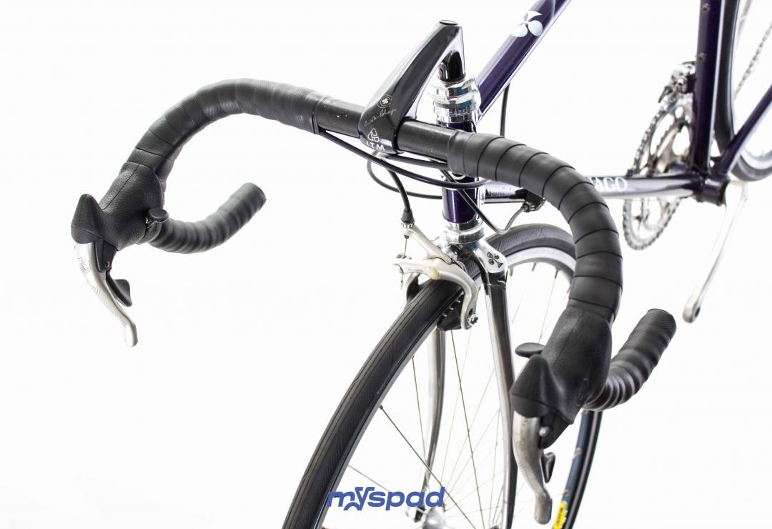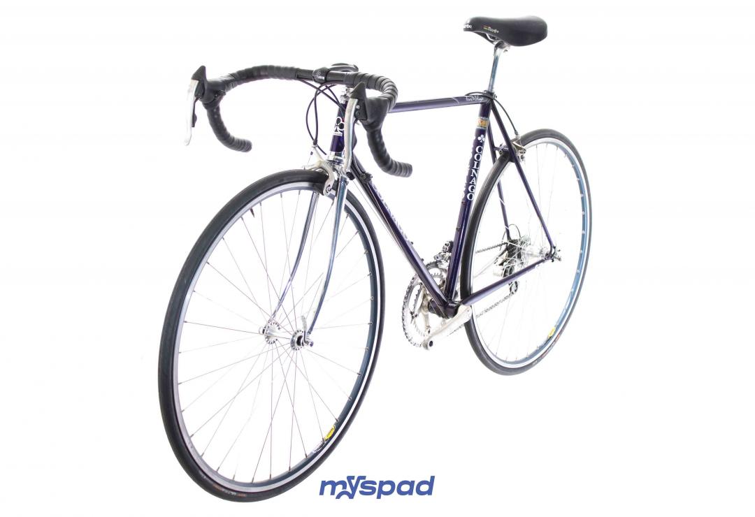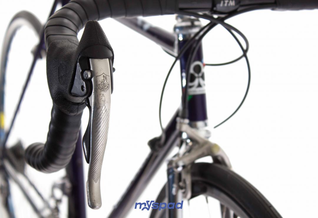 Le Colnago C94, ne figure peut-être pas en tête de gondole des Colnagos, mais reste un vélo de qualité. Son cadre en acier Columbus SL qui privilégie Le confort au poids est en bon état. On retrouve l'exigence de conception de la maison italienne avec de beau raccords chromés au tube de direction et un travail de soudure irréprochable. Si vous chercher à faire des envieux avec une monture à l'aspect de ses premiers jours, arrêtez-vous et laissez-vous séduire.