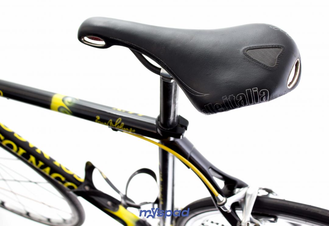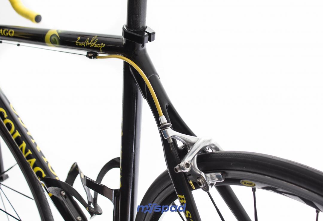 Le Colnago Lux Titanio réconcilie avec élégance rigidité et confort. Avec ses haubans carbone et ses tubes en titane à la géométrie très inspirée du B-stay, il sera votre allié dans les relances de sprints et les épreuves de longue distance. Un vélo particulièrement rapide et nerveux pour des sensations sans pareilles. Monté en Campagnolo Record 9 vitesses et 3 plateaux, l'assurance de rouler en sécurité et efficacité. Il pourra vous emmener en haut des cols avec élégance et "facilité".
