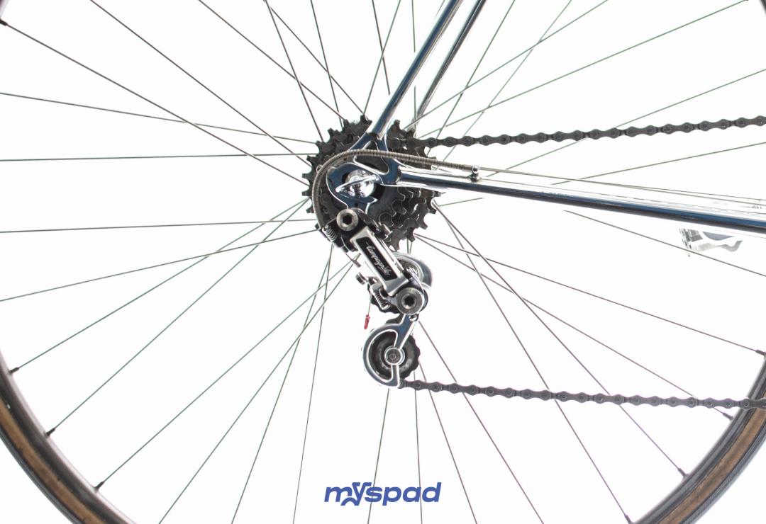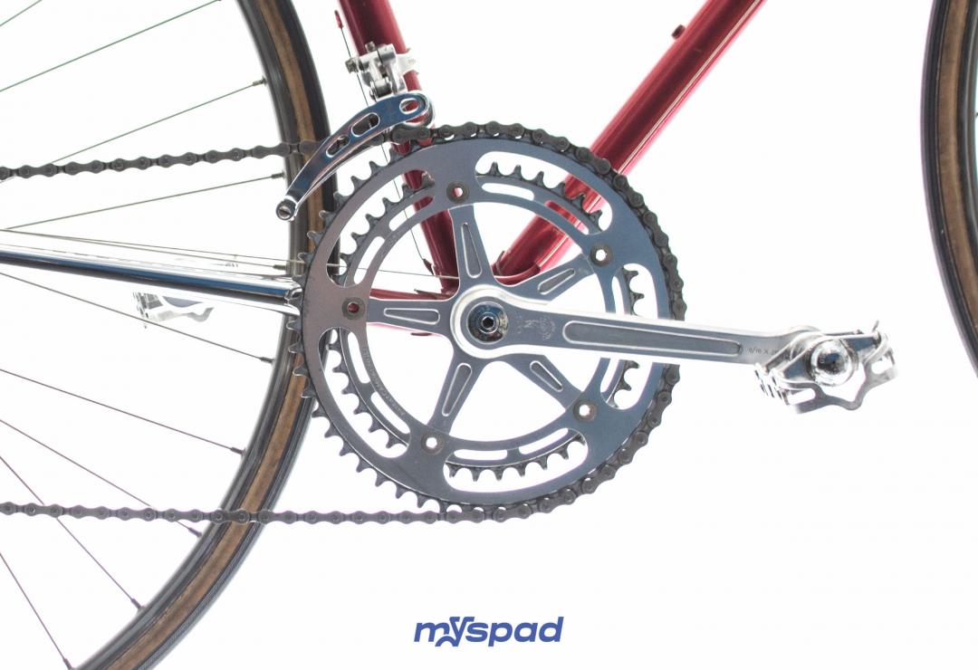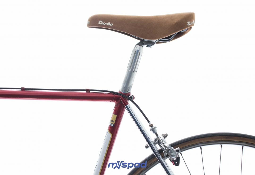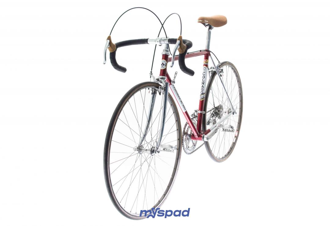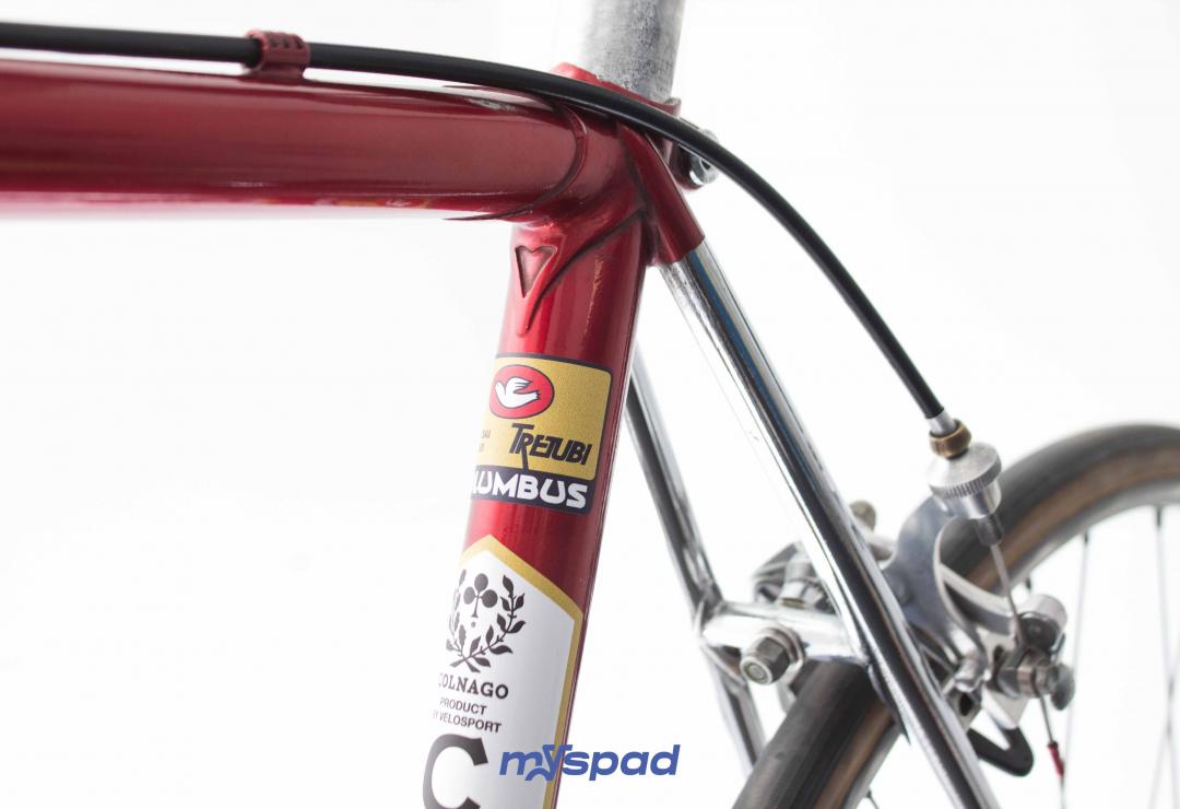 Le Colnago Sport est un modèle d'entrée de gamme mais non moins qualitative de la marque italienne. Il était destiné aux marchés américains et germaniques. S'il n'est pas gravé du traditionnel trèfle de la marque, le cadre en tubes Columbus et au pattes arrières Campagnolo témoigne des mêmes exigences de finition que ses homologues plus hauts de gamme. Ce cadre en excellent état de conservation est équipé d'une transmission Campagnolo Record, le haut de gamme de l'époque.