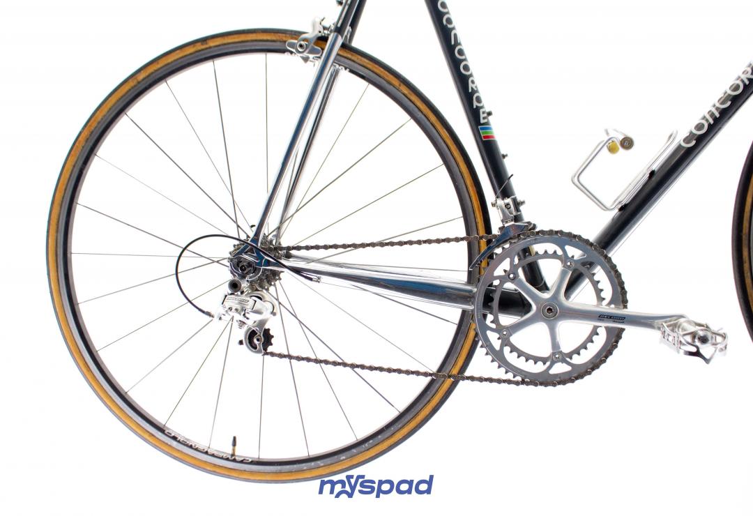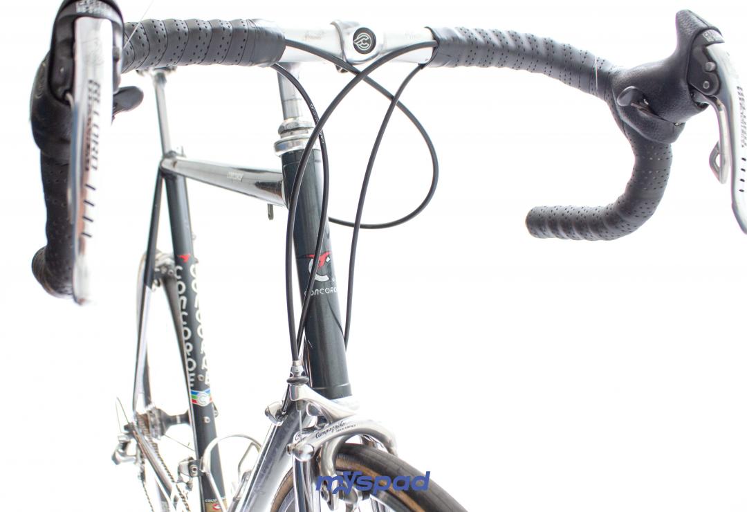 Magnifique Concorde en Columbus Max et équipé en Campagnolo Record NOS. Les cadres en Columbus Max de Concorde étaient parmi les produits emblématiques de la marque. Columbus Max est une gamme de tubes en acier haut de gamme fabriquée par la société italienne Columbus, spécialisée dans la production de tubes pour vélos. Les cadres en Columbus Max sont réputé pour sa grande résistance, sa rigidité et sa légèreté, ce qui en faisait un choix idéal pour les vélos haut de gamme destinés à la compétition et à la performance. Concorde a collaboré avec des artisans italiens hautement qualifiés pour fabriquer ses cadres en Columbus Max. Chaque cadre était généralement fabriqué à la main, ce qui garantissait une qualité de fabrication exceptionnelle et une attention aux détails.