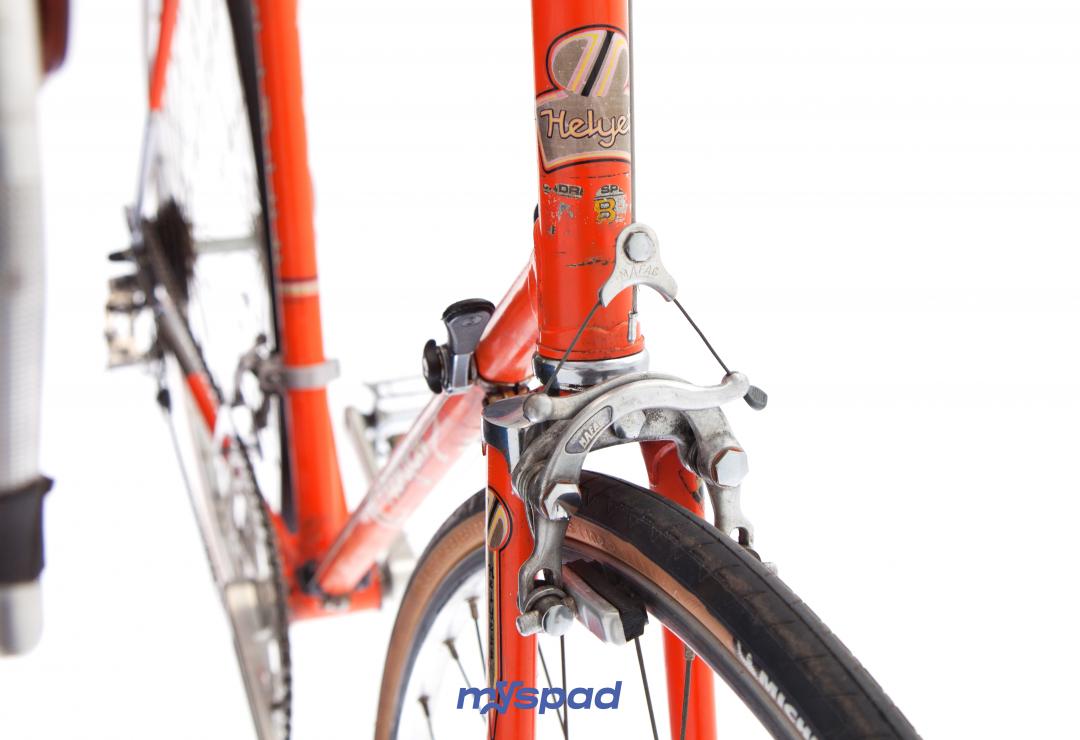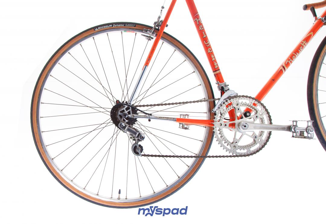 Elégant et d'origine, restauré avec goût et délicatesse. Ce Helyett a tout pour séduire. Sa guidoline vintage en coton assortis aux flans beige des pneus et ses équipements d'époques lui assurent cette classe intemporelle. Ce cadre francais, haut de gamme de sa génération avec ces subtiles raccords, ses feuilles d'oliviers pantographié aux haubans et ses pattes de dérailleur en nid d'abeille. Une selle cuir Idéale pour compléter l'ensemble. Du 95% made in France. Patte de dérailleur en nid d'abeille.