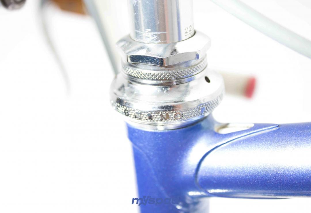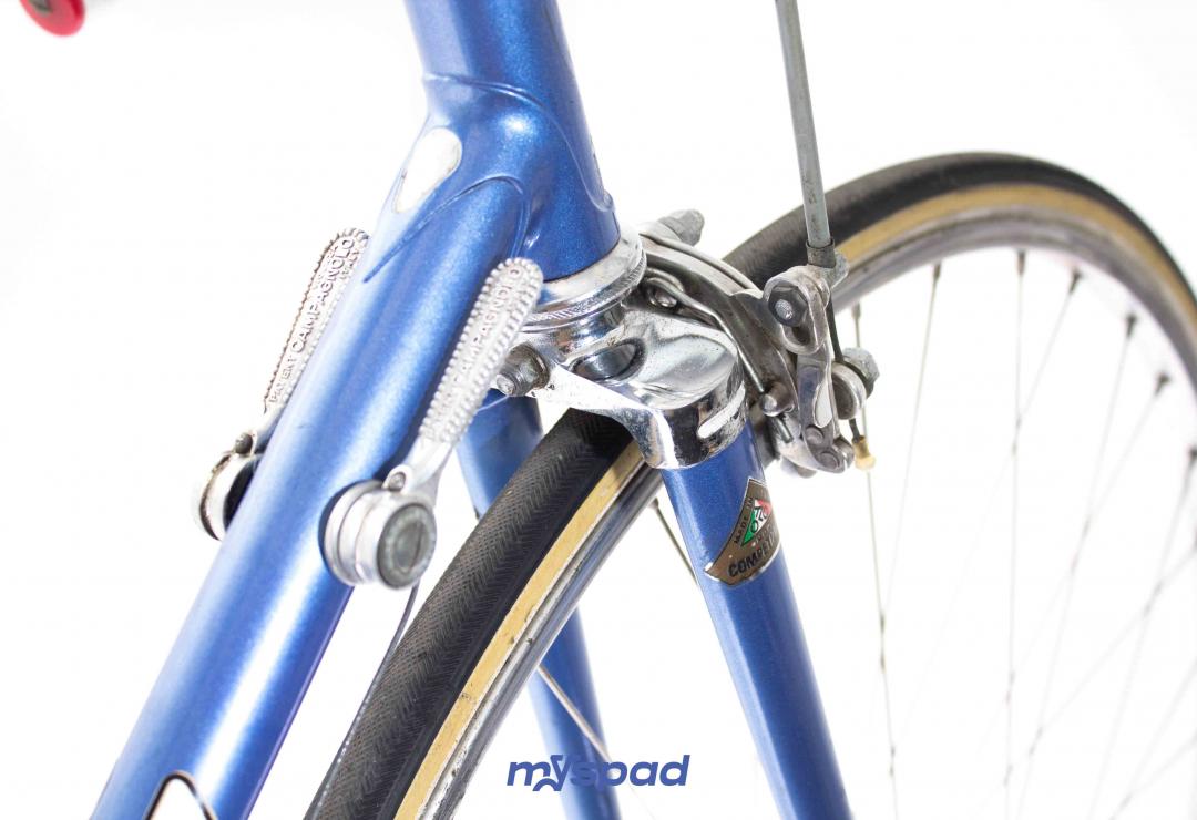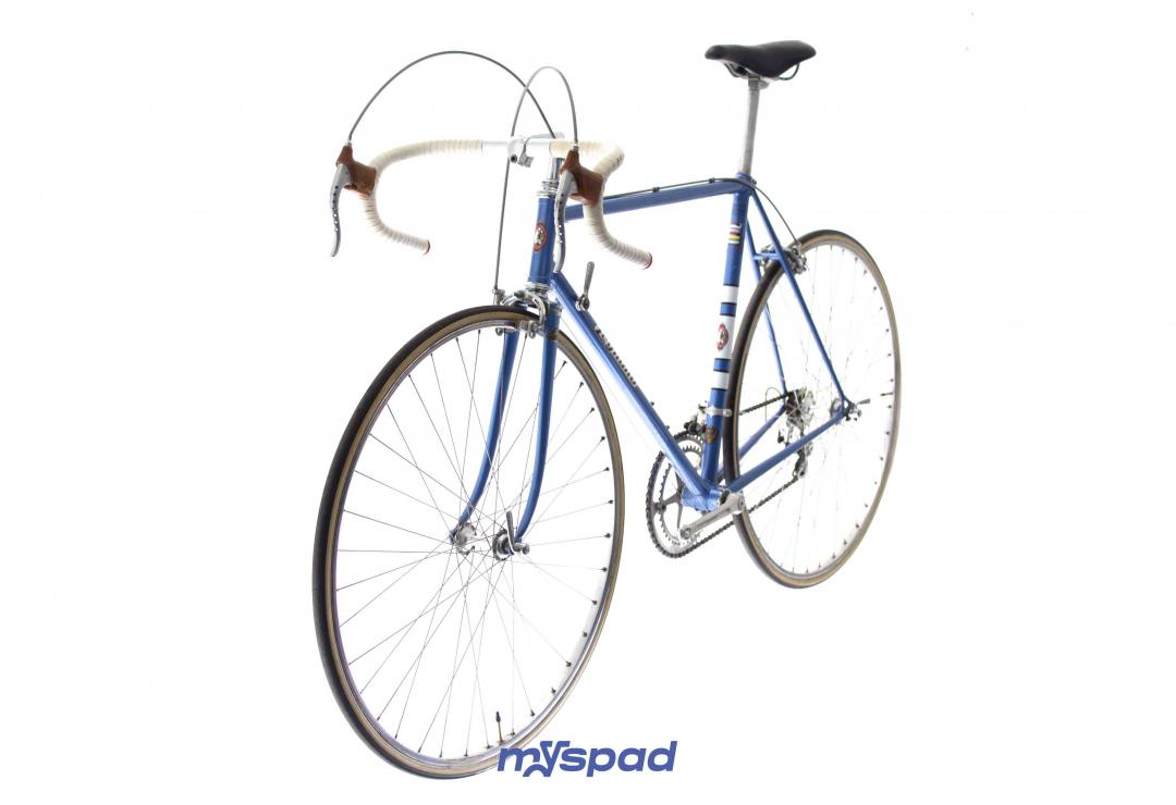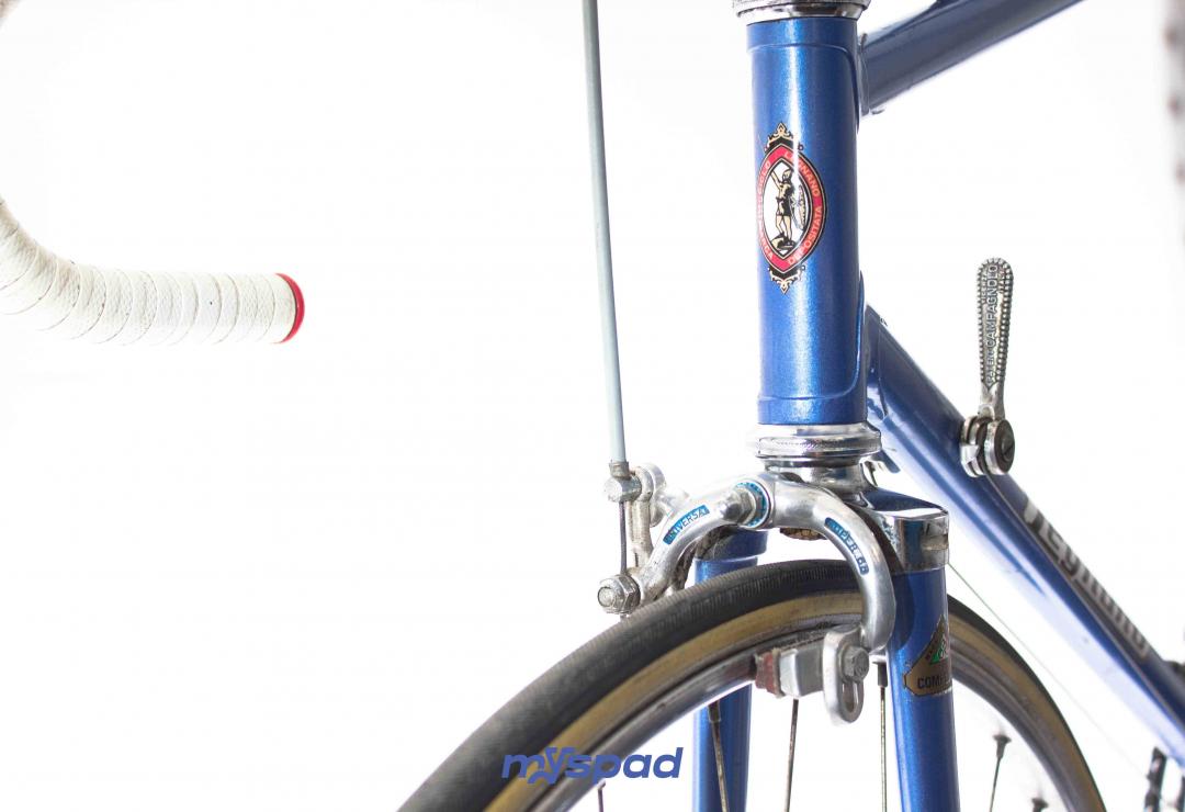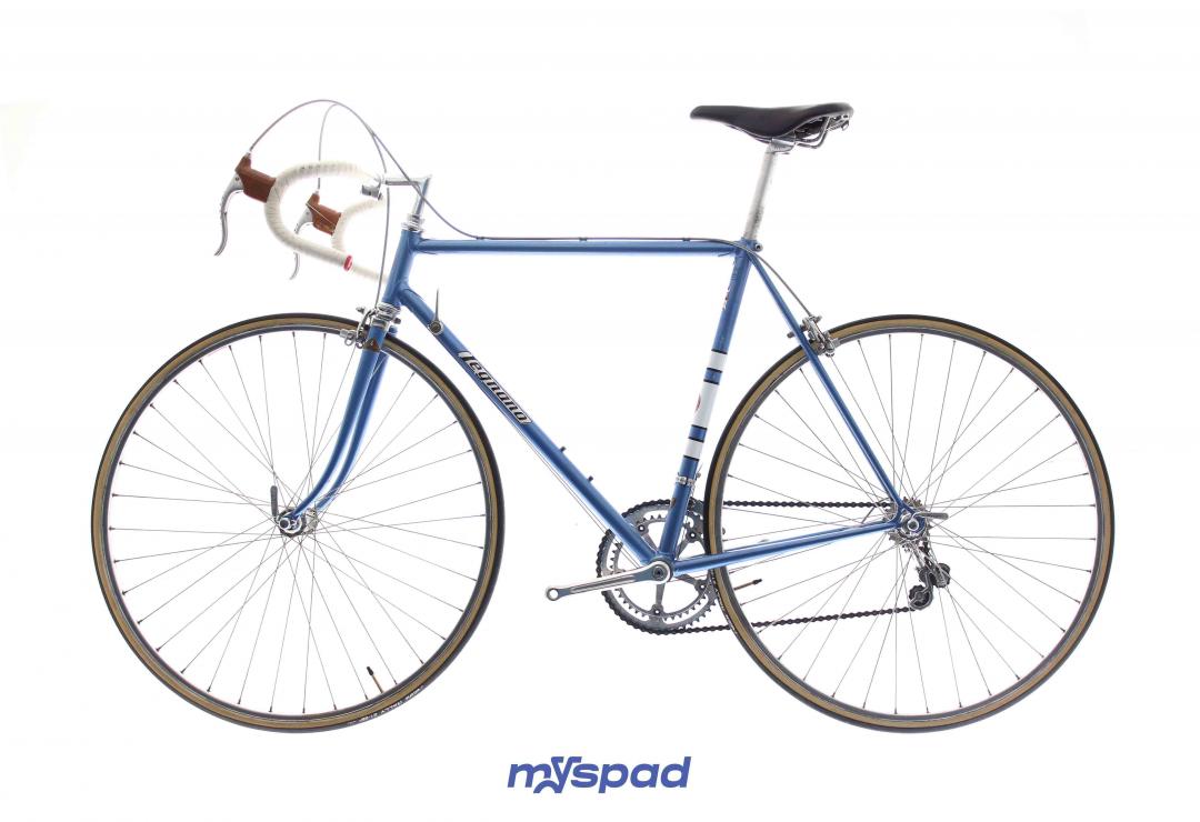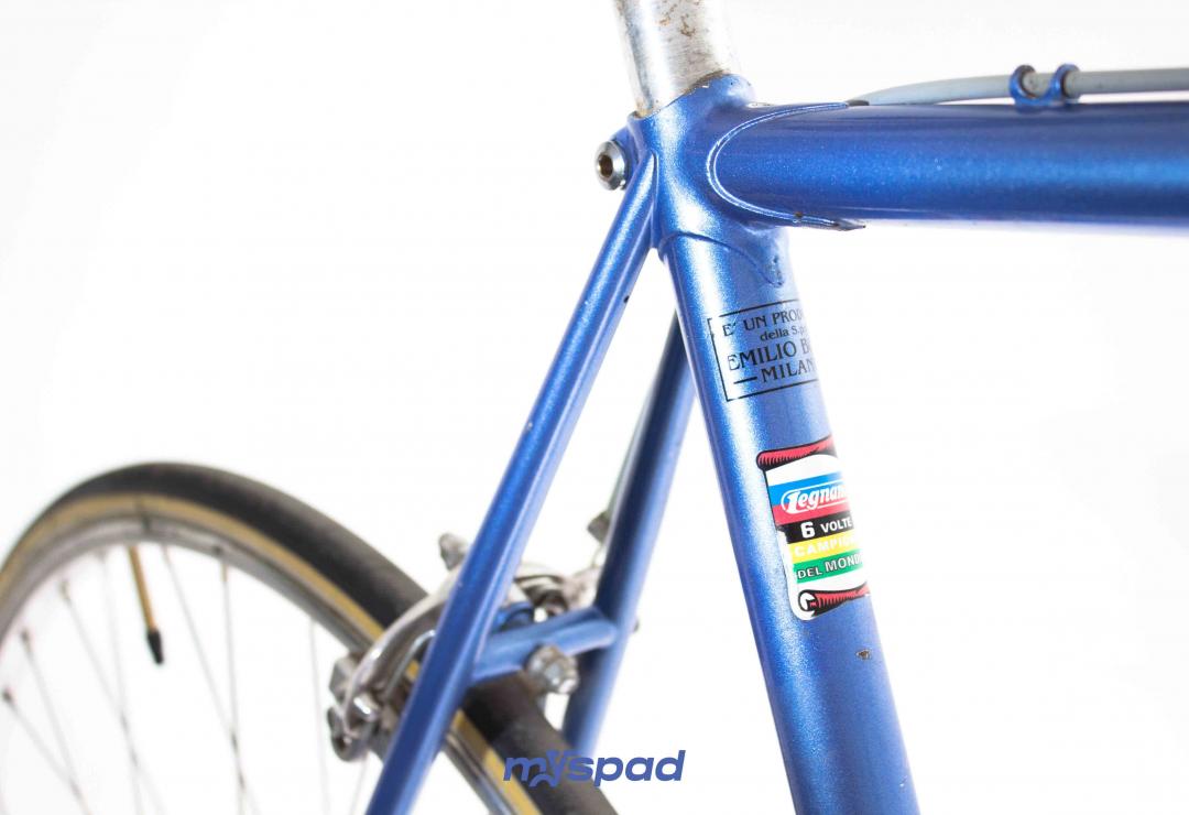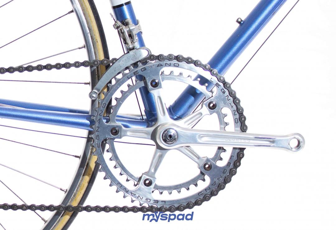 Magnifique vélo de collection. Ce Legnano Competizione de la fin des années 1970 (peut-être 1979?) est rare mais également splendide. La peinture et les décalcomanies sont dans un parfait état. Les roues avec des moyeux Legnano(!) ont été re-rayonnés et les boyaux changés. Le reste du vélo est composé d'équipement haut de gamme (et d'origine!) les étriers Universal ont été légèrement teintés en bleu pour rappeler la couleur du cadre. Bref, du grand art italien.