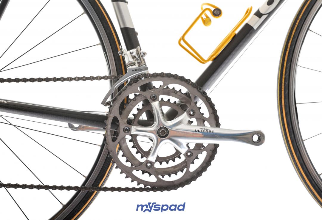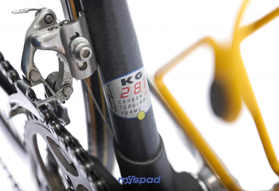 Un vélo de collection avec des pièces d'exception et une conduite des plus confortable ! Tout ça dans ce petit vélo de moins de 9kg et de 21 ans. Une potence devenu légende, la Ergostem peut se vendre à elle seule plus de 200€. La tige de selle, l'Ergopost est aussi une des plus belles pièces réalisé par la marque de Nevers au logo Mondrian. Ce modèle haut de gamme de la marque utilisé sur tous les grands tours professionnels du début de siècle combine avec cela un groupe Ultegra et les leviers Dura-Ace dans un état de conservation rare !