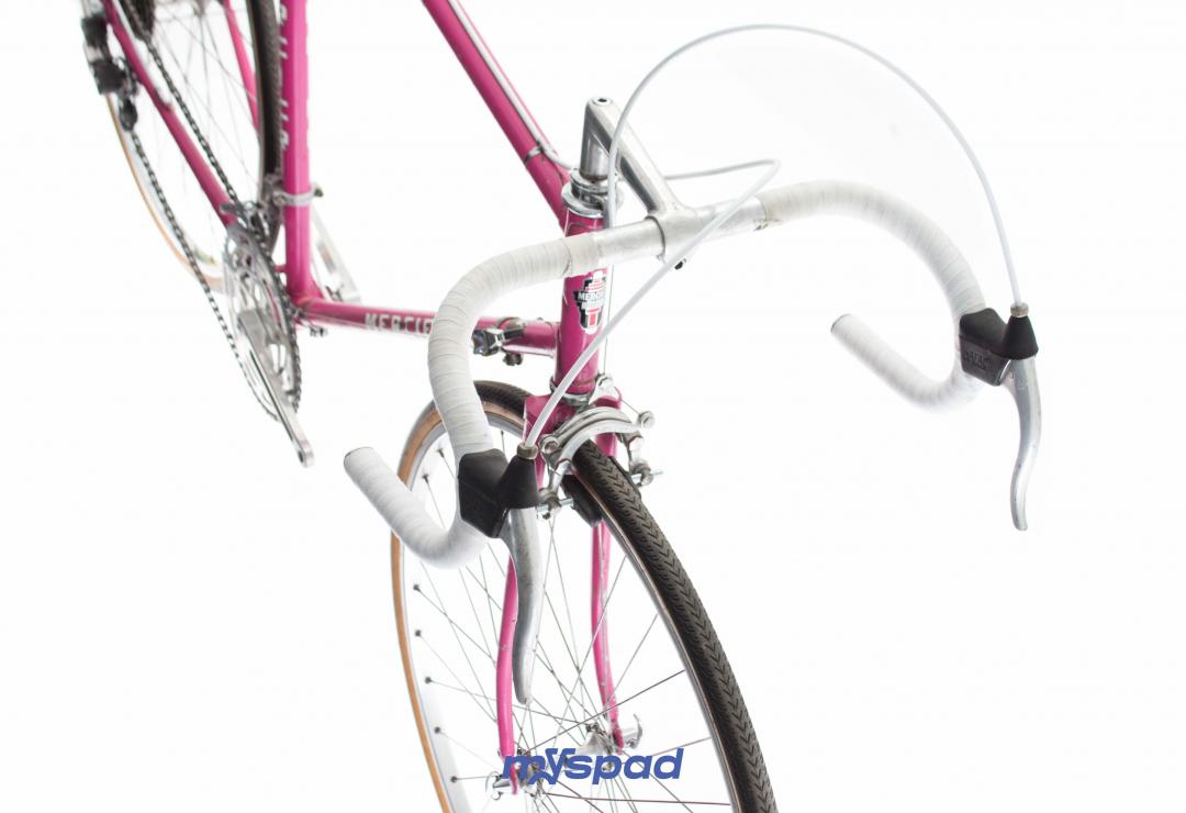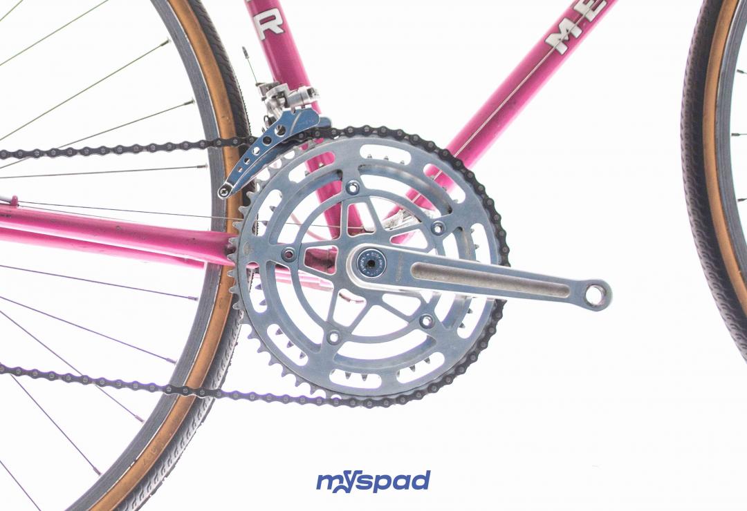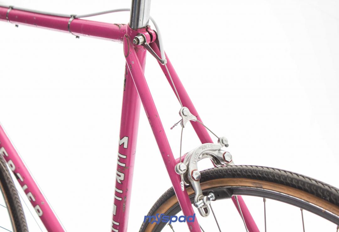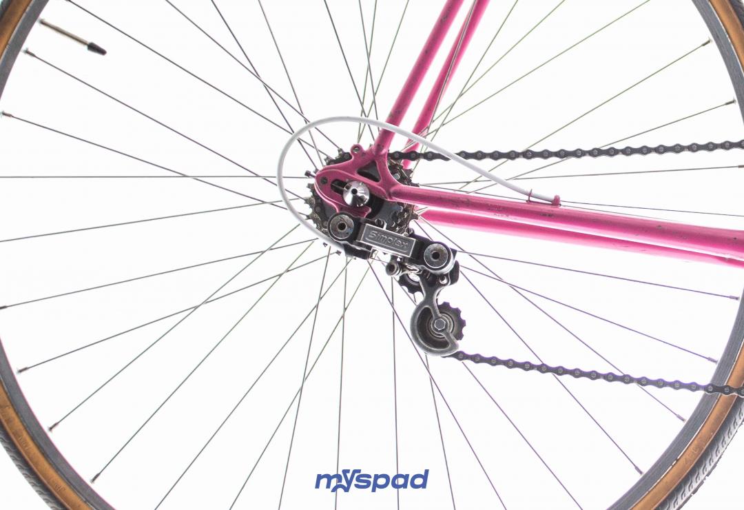La célèbre marque de Saint-Etienne dont le rose est la couleur bannière a donné le nom du massif Alpin des Aravis à ce modèle de cadre aux finitions soignées. Restauré avec ses groupes d'origine en Mafac et Simplex le vélo présente quelques traces du temps qui n'enlèvent rien à son charme. À l'aise en ville et sur les longs trajets, il sera un bon compagnon pour toute virée. Laissez-vous guider par la panthère rose, sur les traces de Raymond Poulidor.