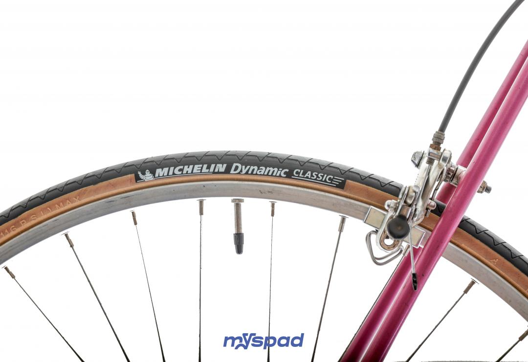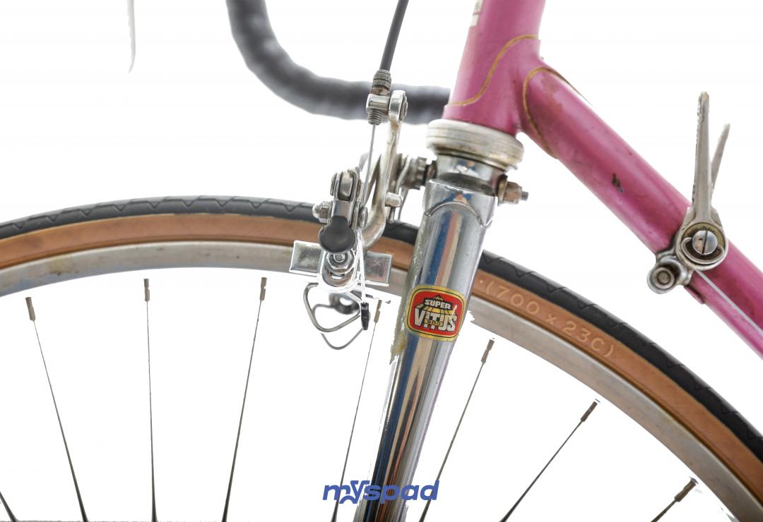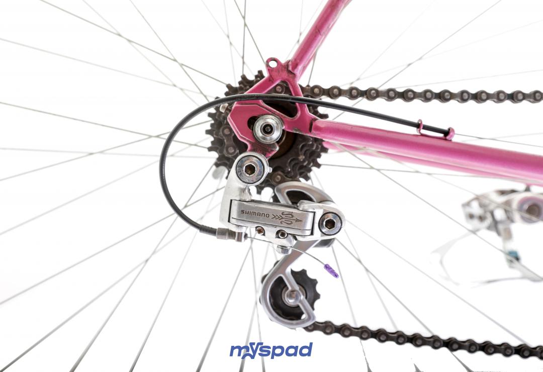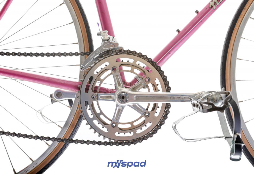 Le mythique vélo de Poulidor dans sa version course, numéroté et en Shimano haut de gamme. Le pédalier Dura-Ace et un groupe composé de Shimano 600 pour le purfreinage (leviers et étriers) et Shimano Arrow pour les dérailleurs. Une belle mécanique pour un vélo toujours aussi efficace et qui fera toujours bel effet.