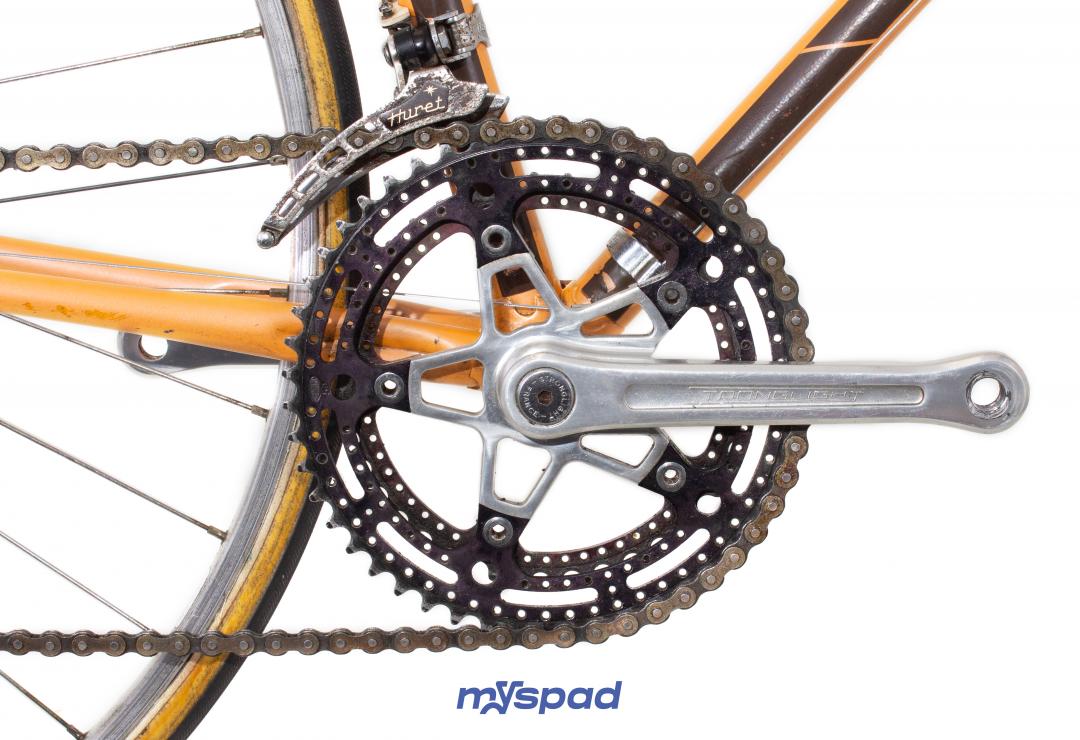Bon état. L'ensemble des pièces du vélo ont été controlées. Quelques éclats sur la peinture d'origine.