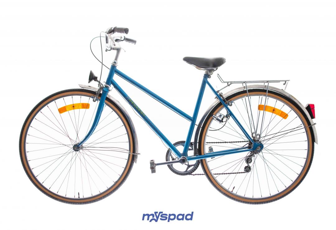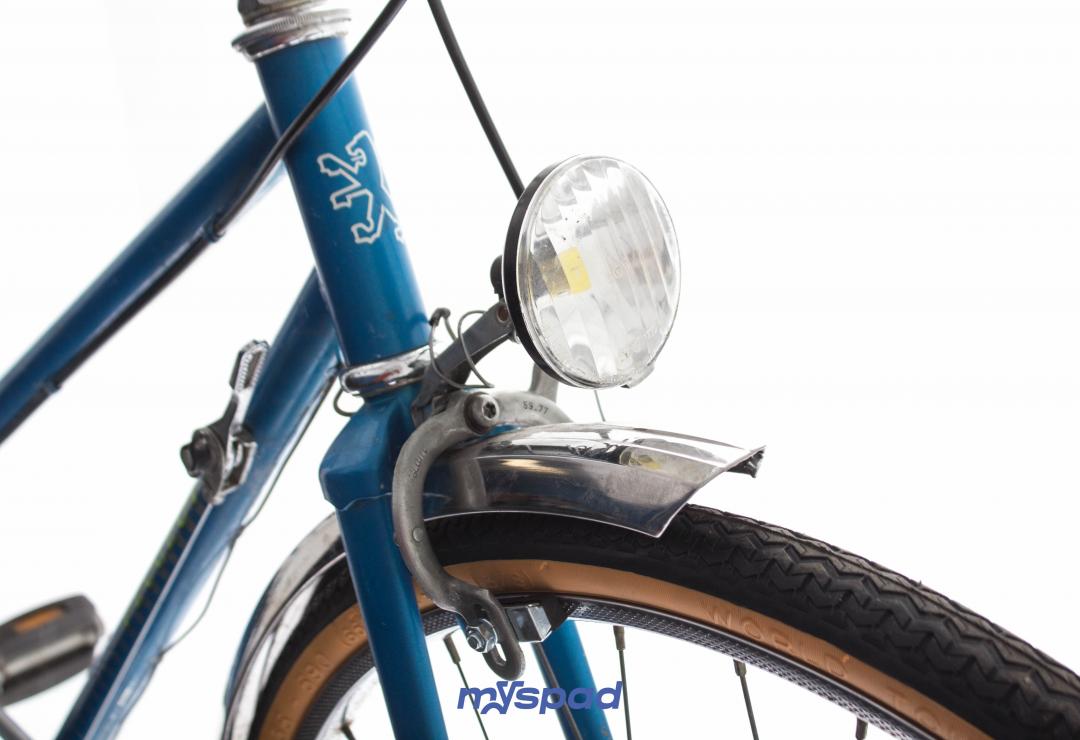 Petit Peugeot très bien conservé, bien équipé avec ces gardes-boue, ses éclairages avec dynamo fonctionnel, son petit porte bagage. Bref prêt à rouler tranquillement encore pendant plusieurs années.