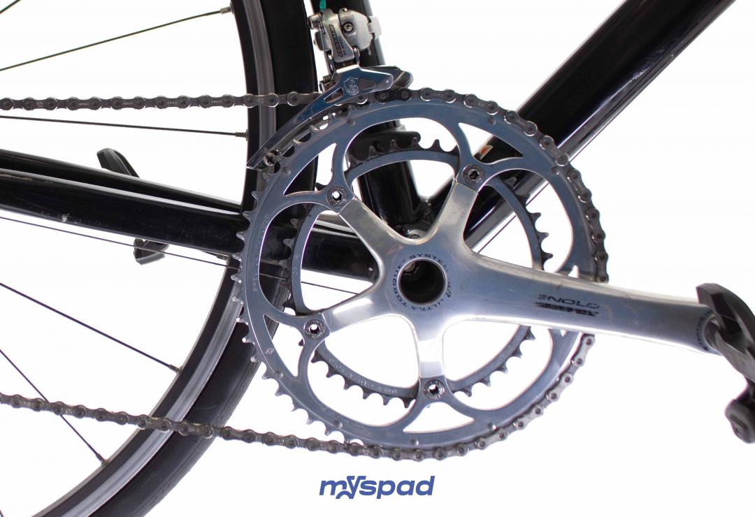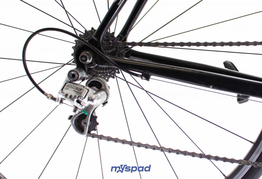 Ce vélo est équipé du groupe Campagnolo Centaur à 10 vitesses (avec le dérailleur arrière en Campagnolo Chorus !).