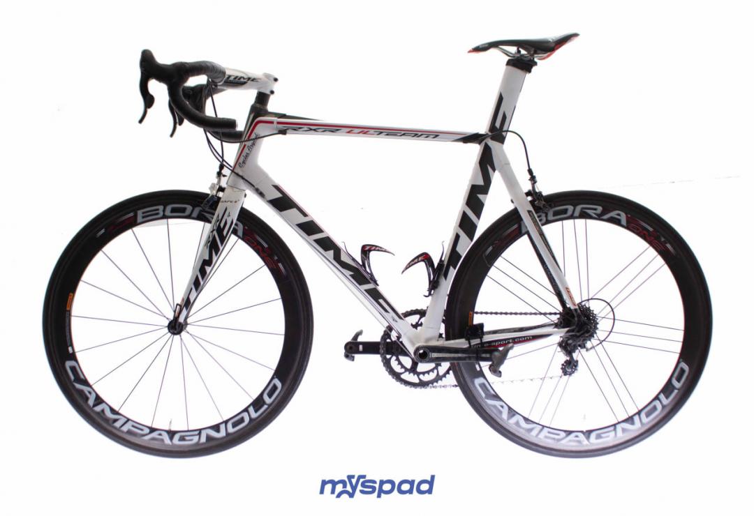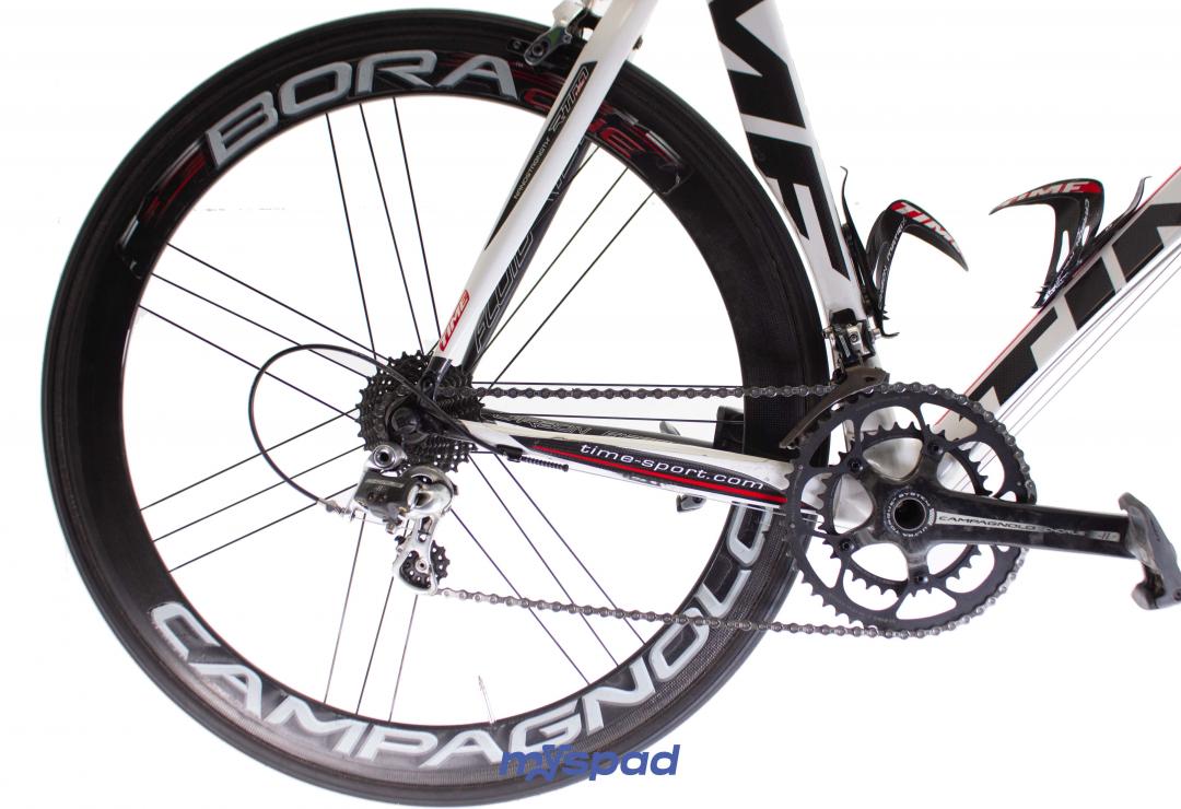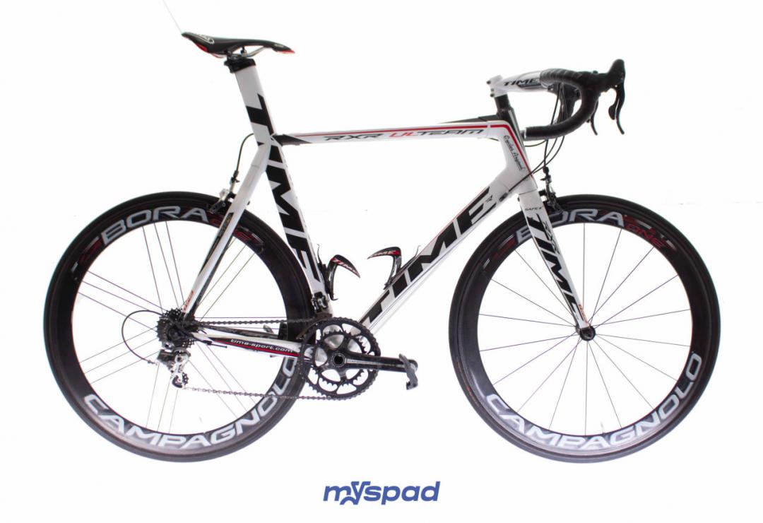 Roulez ou plutôt, envolez vous avec ce vélo ! Un vélo made in France, et aux composants hauts de gamme italien avec son groupe Campagnolo Chorus 11V et ses roues Campagnolo Bora One. Un vélo de 7,5kg ! Si vous êtes grand et que vous voulez allez vite sur tous types de routes goudronnés c'est le vélo qu'il vous faut. Le vélo Time RXR Ulteam équipé du groupe Campagnolo Chorus 11 vitesses est un vélo de route haut de gamme conçu pour offrir des performances exceptionnelles et une expérience de conduite de qualité supérieure. Voici une description de ses caractéristiques principales : Cadre : Le cadre du Time RXR Ulteam est fabriqué en fibres de carbone haut module, ce qui le rend léger, rigide et réactif. Il est conçu pour optimiser la transmission de puissance et offrir une conduite précise et confortable. Transmission : Ce vélo est équipé du groupe Campagnolo Chorus, qui est réputé pour sa précision et sa fiabilité. Il comprend une cassette à 11 vitesses offrant une large plage de rapports pour s'adapter à tous les types de terrains. Freins : Equipé d'étriers SRAM Red qui garantissent une excellente puissance de freinage et un contrôle optimal, même dans des conditions humides ou difficiles. Roues : Ce vélo est équipé de roues légères et rigides, les Campagnolo Bora One 50mm en carbone offrent une excellente réactivité et une bonne aérodynamique. Equipé en Boyaux Tufo 24mm, pour rouler comme les pros. En résumé, le vélo Time RXR Ulteam Campagnolo Chorus 11 vitesses est un choix de premier ordre pour les cyclistes à la recherche de performances et de qualité. Son cadre en carbone, sa transmission fluide et ses freins puissants en font un vélo idéal pour les cyclistes passionnés et les compétiteurs sérieux. - Hauteur du tube de selle : 56 d'axe en axe. - Hauteur de la selle : 105cm - Hauteur entre axe du pédalier et collier de tige de selle : 74cm La tige de selle peut se remonter de 15cm environ. Le tube de selle peut se couper d'une dizaine de cm.
