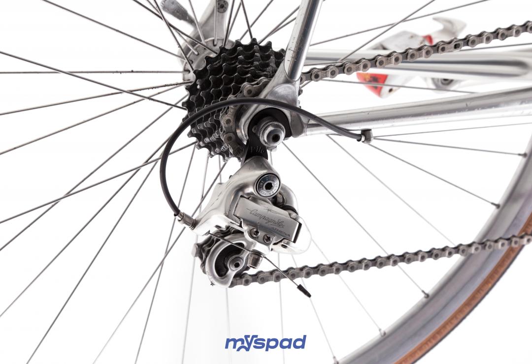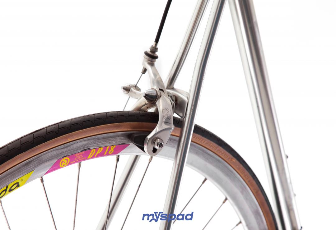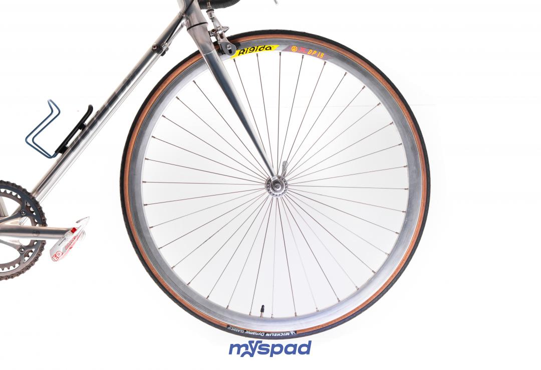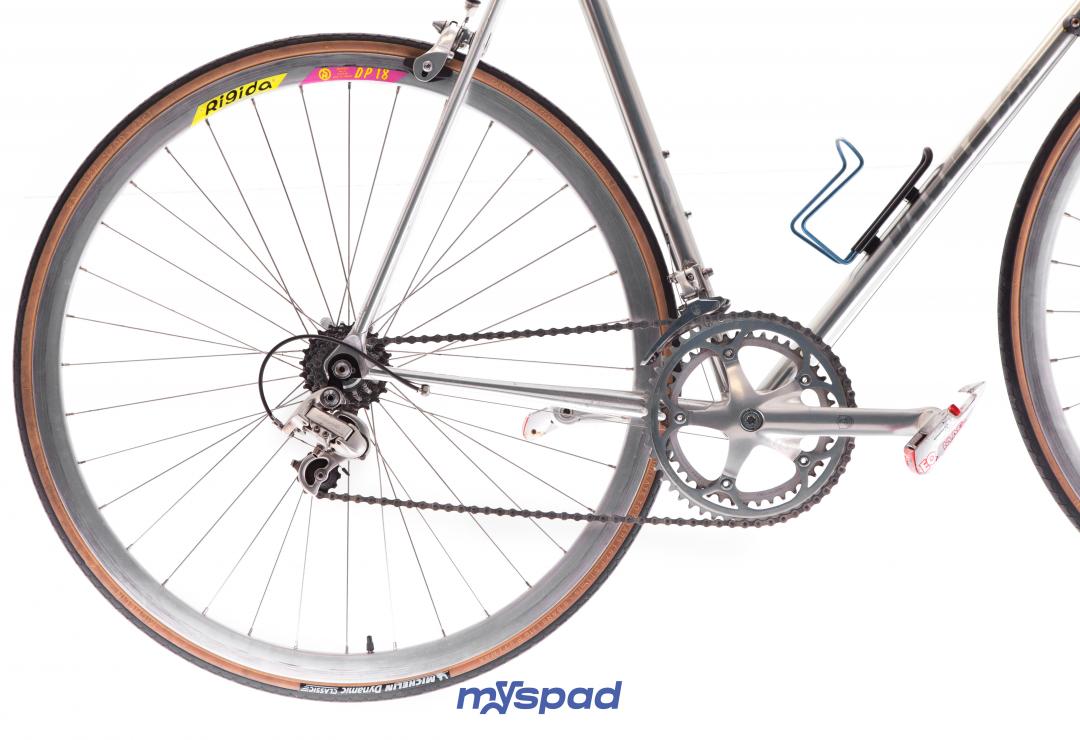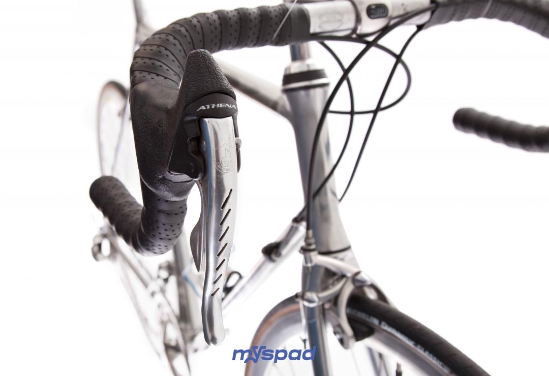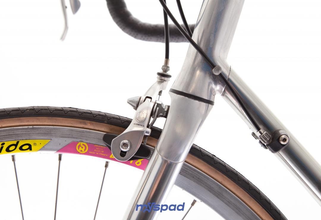 Merveille chromée, tout Campagnolo Athéna, le petite reine épurée avec ses tubes ovoides du Vitus 992 en super état. Des roues Rigida DP18 profilées aux moyeux Campagnolo. Reconditionné et prêt à prendre la route.