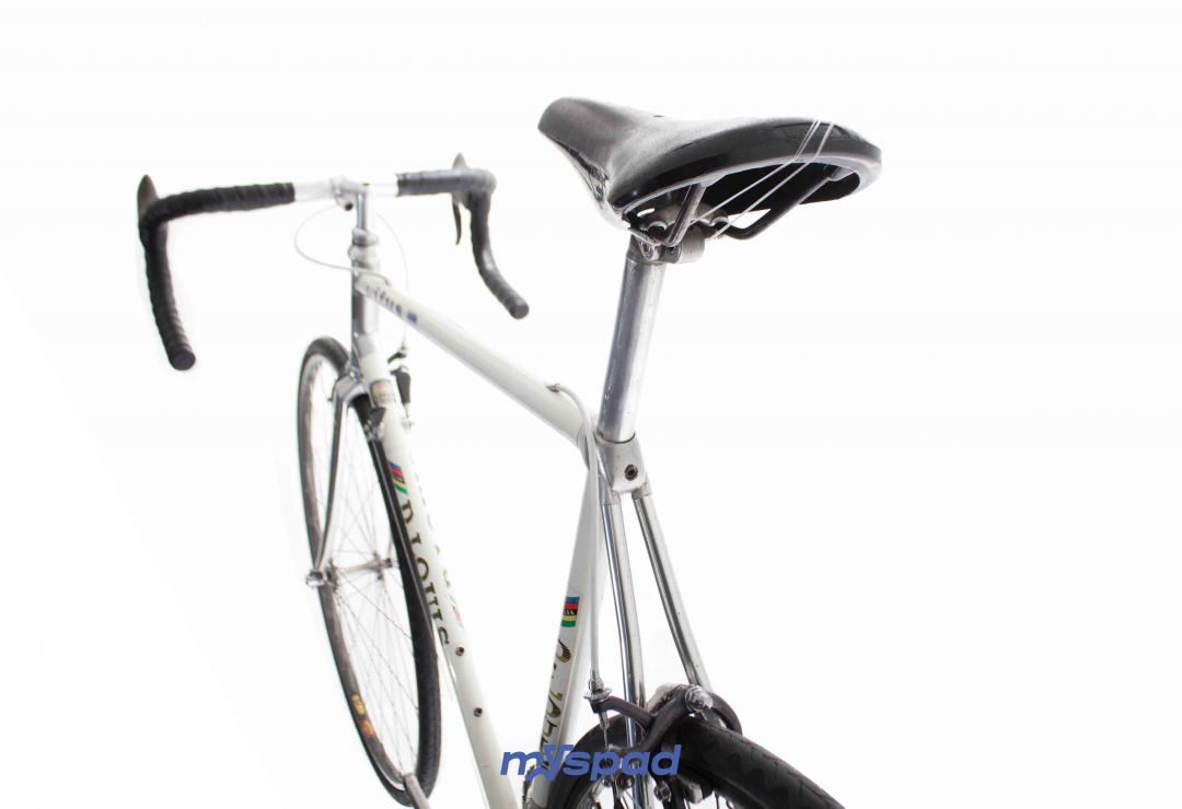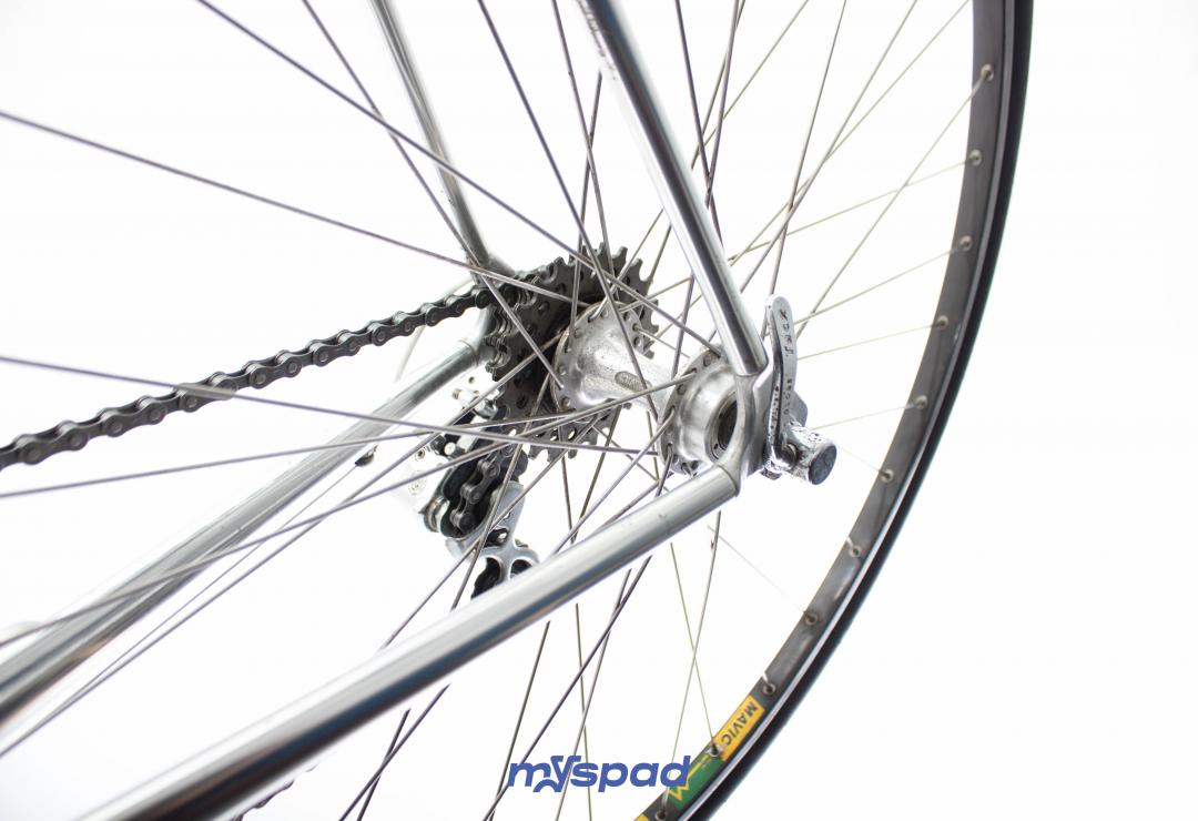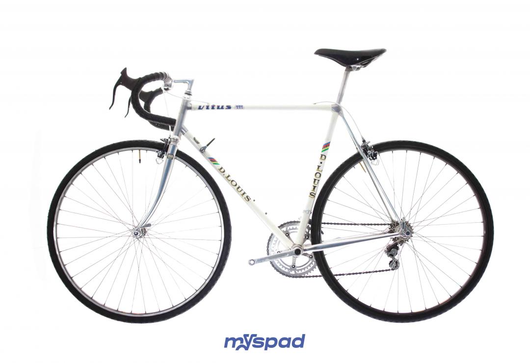 Un vitus en Dural 979 des années 80 en superbe état ! Ce vélo léger se distingue par sa sobriété en noir et blanc. Il est équipé avec le haut de gamme de l'époque, des étriers Dura-Ace édition noire et en Simplex SLJ côté transmission. Ce Vitus de Didier Louis, célèbre dans le monde du vélo, pour avoir monté une boutique de cycles puis être devenu directeur sportif de sa propre équipe comprenant notamment les frères Madiot, Thierry Marie et Evgueni Berzin. Il a ensuite racheter une usine de fabrication de vélos en carbone monobloc aux Etats Unis et a terminé sa carrière dans le monde de l'équitation. Un beau parcours, pleins de succès. Du succès, vous en ferez aussi avec ce Spad.