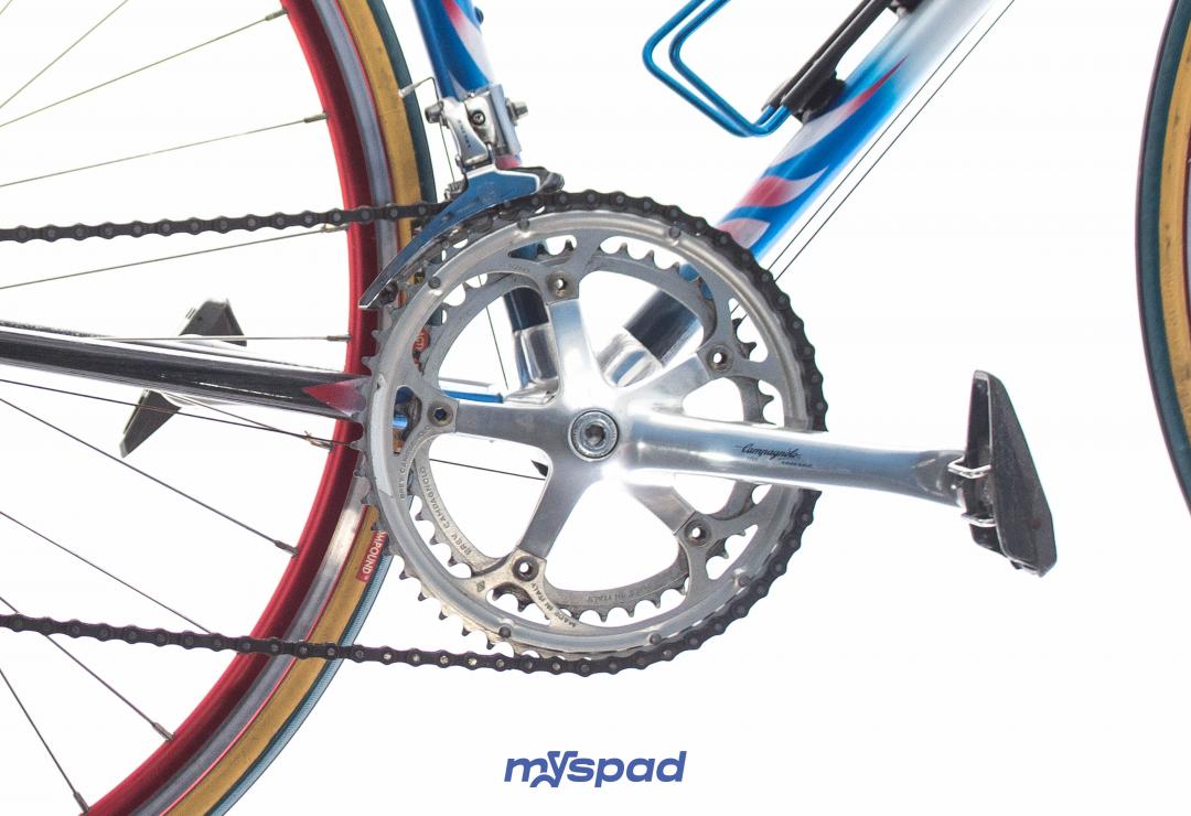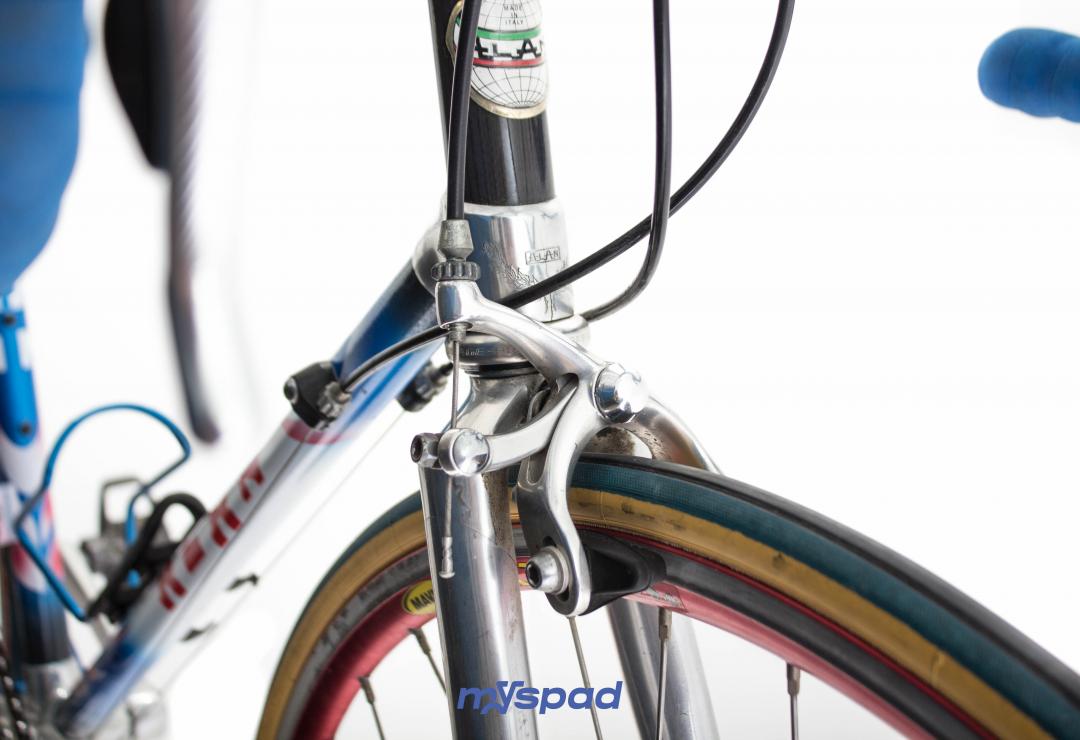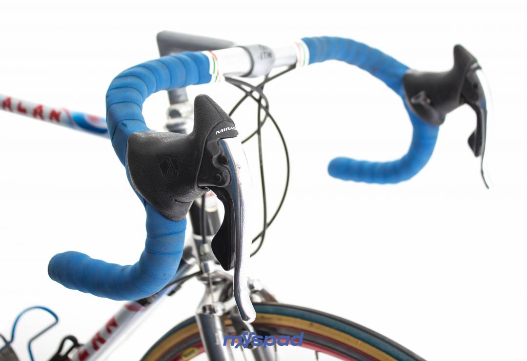 Magnifique vélo de collection. Très rare ce vélo aux tubes carbones et à cette peinture (unique ?) est d'une beauté incroyable. Néanmoins, le prix est très bas car un manchon aluminium est fissuré (la maladie des Alan...) Un vélo de vitrine, qui peut-être tout de même utilisé avec précautions.