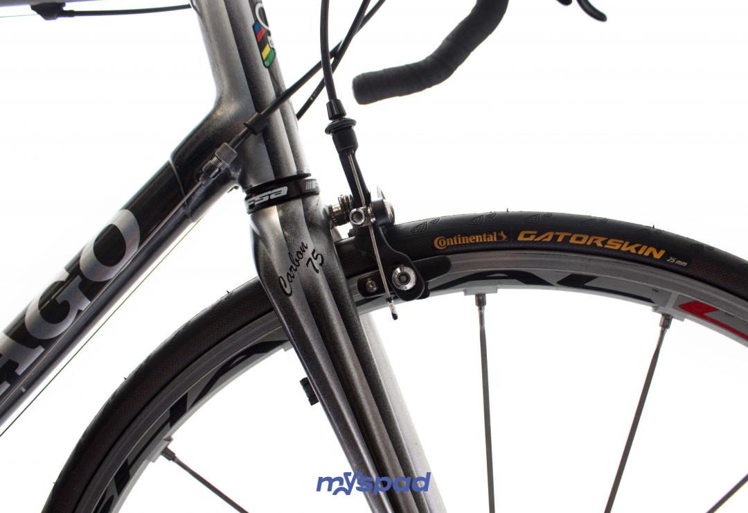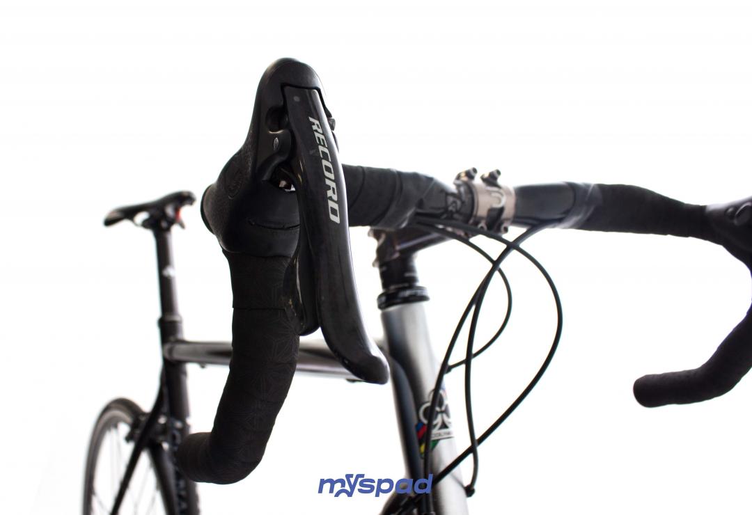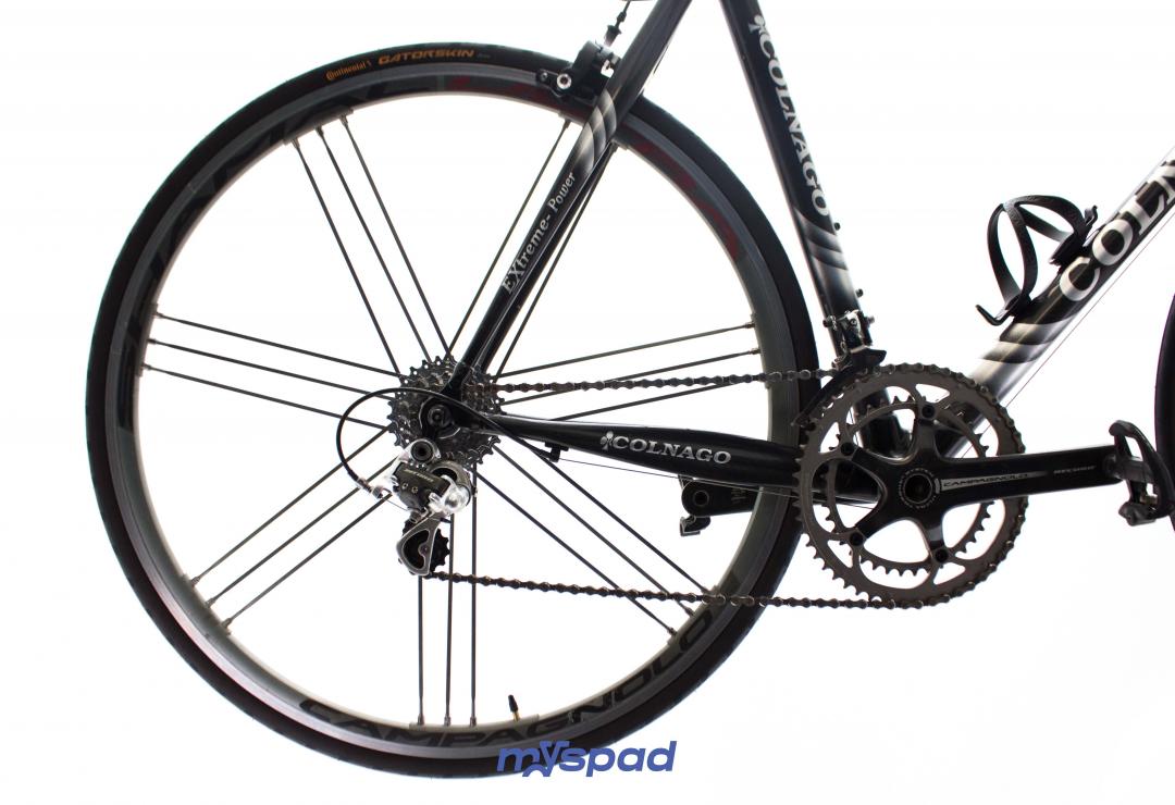 Une perle rare, ce Colnago Extreme C power, avec une transmission Campagnolo Record!! Entièrement fabriqué en Italie, son cadre ainsi que l’ensemble de ces pièces. Le plus haut de gamme du groupe Italien Campagnolo et un cadre full Carbone dynamique et à la peinture raffiné. L’élégance à l’italienne. Monté sur des roues Campagnolo Shamal Ultra en excellent état, l’ensemble pèse moins de 8kg (7,7kg) et est également agrémenté d’un ruban de cintre et d’un porte bidon Supacaz neufs ainsi que de pneus Continental Gatorskin également neufs. Des pédales Look Keo sont également fournies.