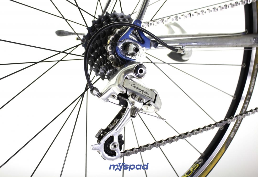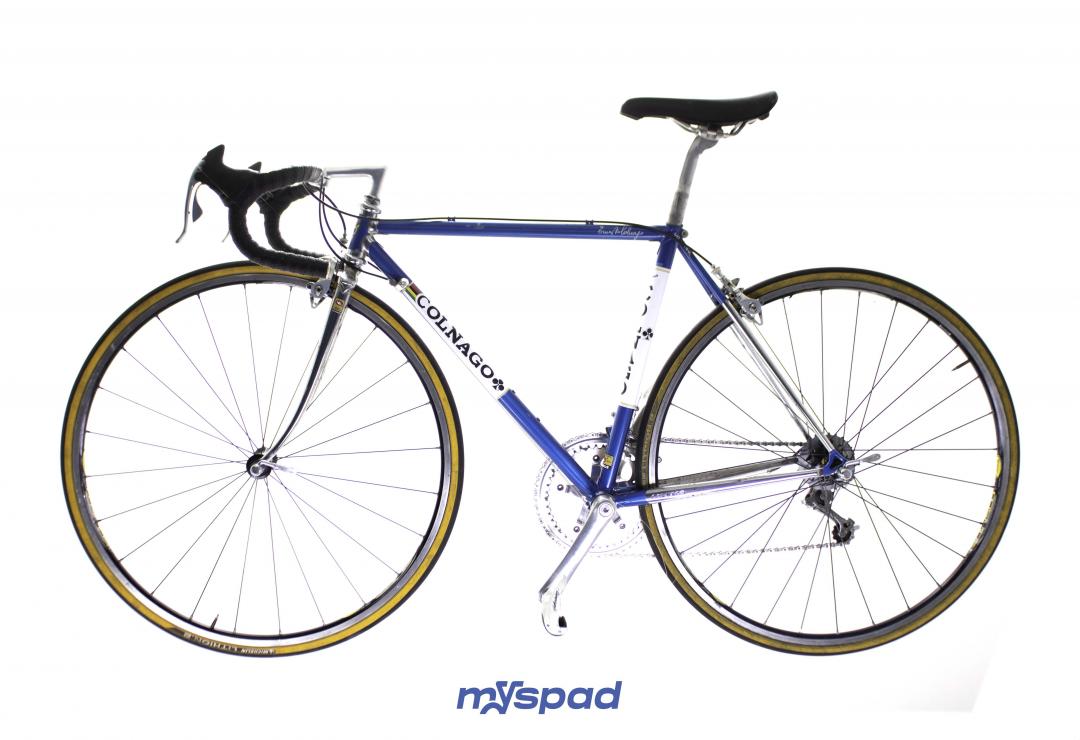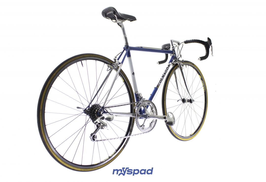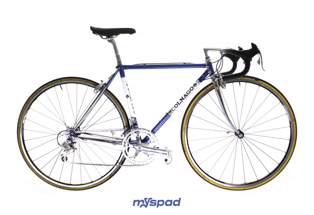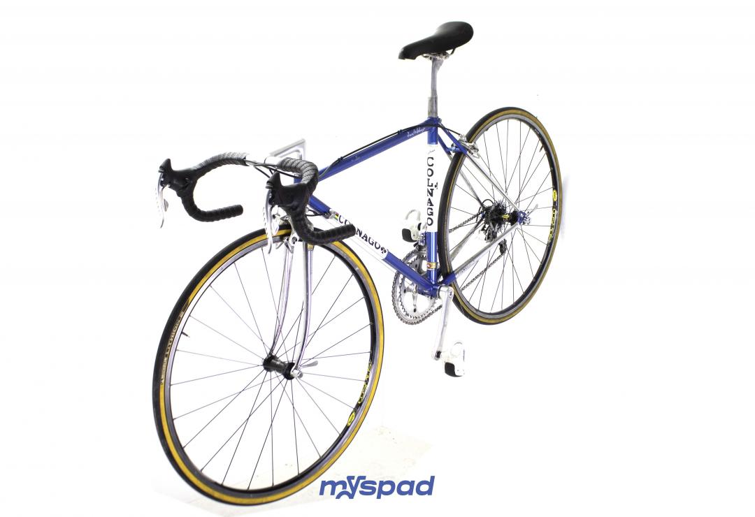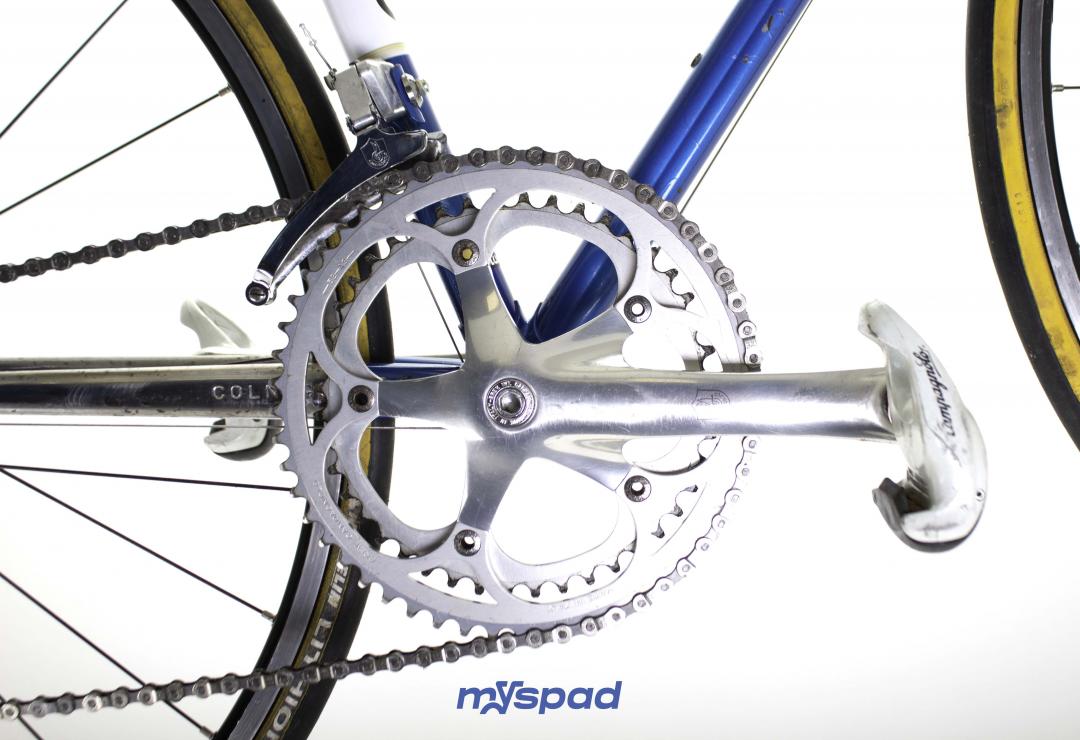 Un Colnago Mexico de petite taille et à petit prix. Restauré avec soins, il comporte néanmoins les traces de son existence passée avec ses éclats sur sa peinture d'origine et quelques traces superficielles de rouilles sur ces chromes. Monté en 8V pour le moderniser avec de belles roues Mavic Cosmos. Pour personne autour de 1m60 mais avec sa grande potence et sa tige de selle qui monte assez haut, il peut convenir jusqu'à 1m70 easy.