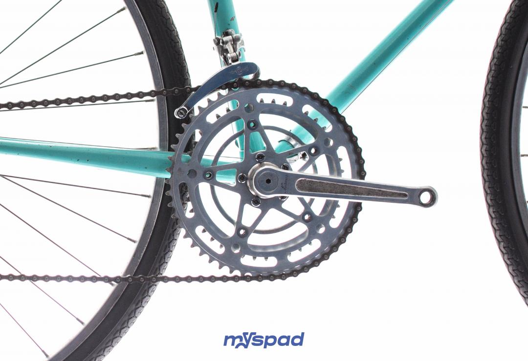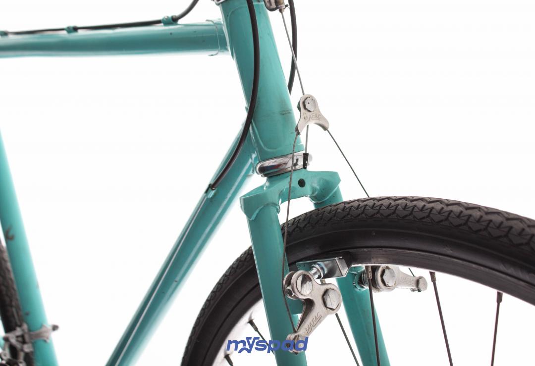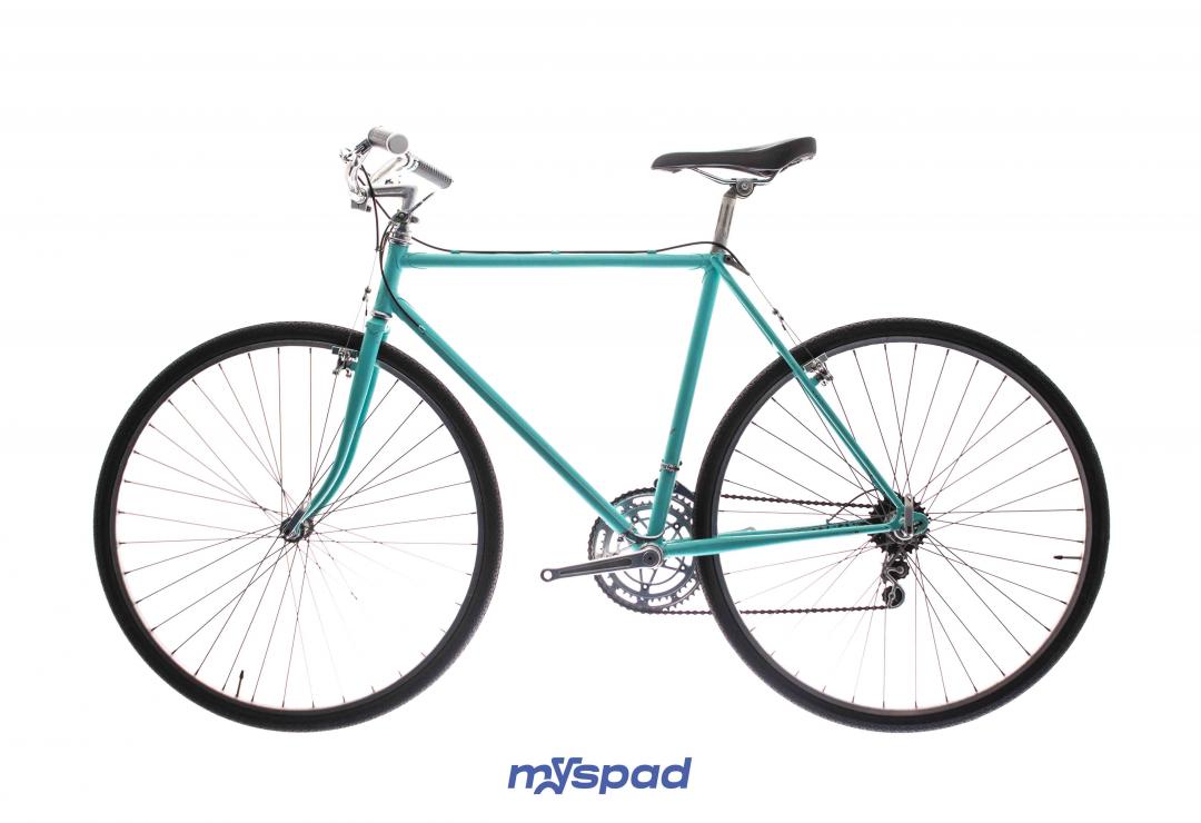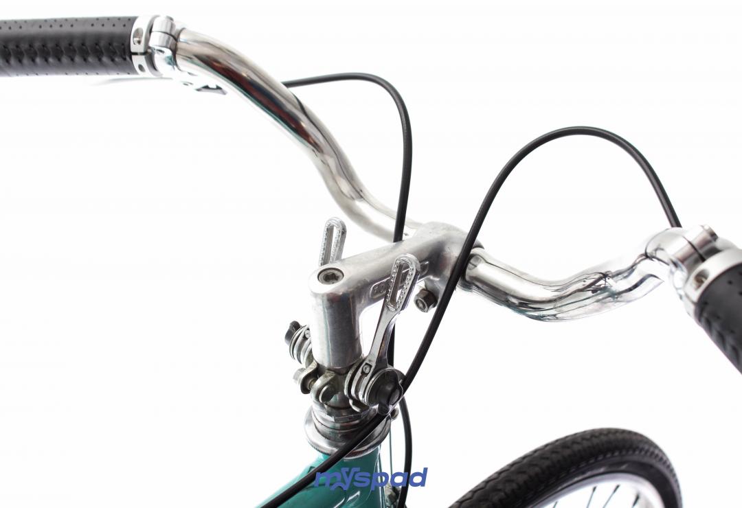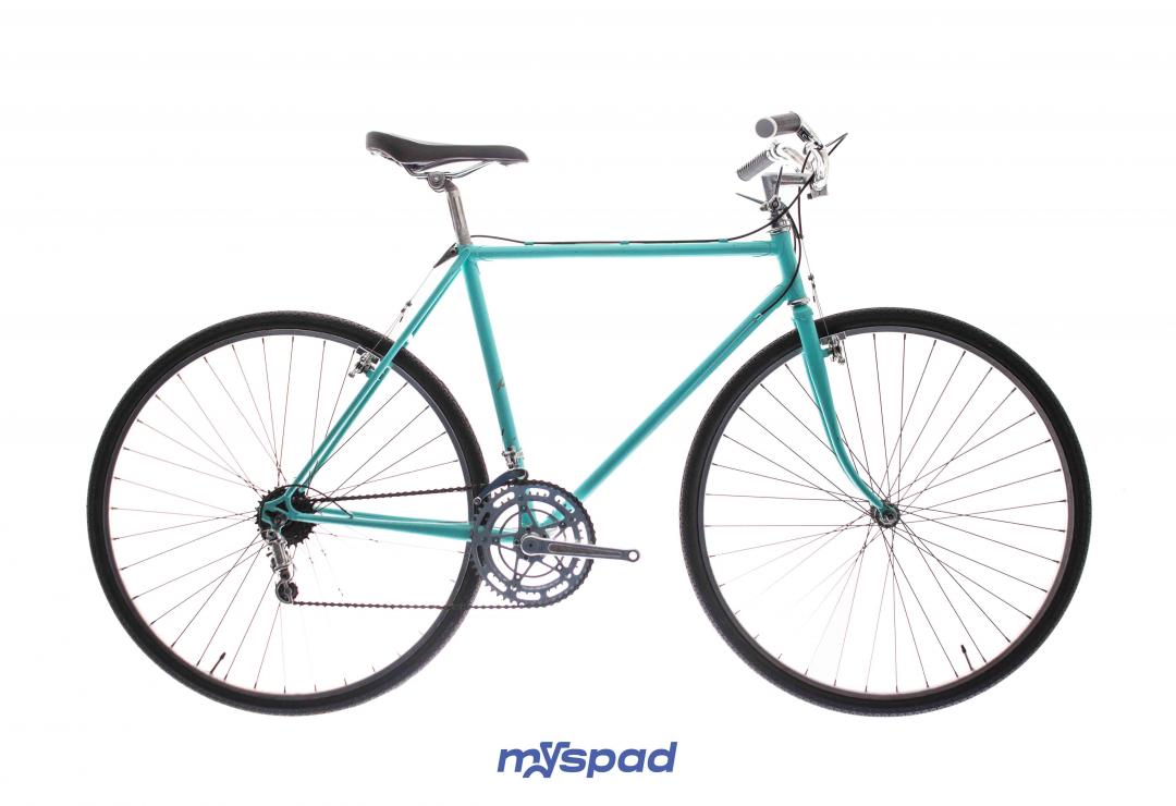 Les vélos cyclocross vintage sont des pièces rares encore en circulation. Ce modèle de marque incconu mais de confection non moins de qualité est en parfait état mécanique. Nous l'avons doté d'un riser relevé typé VTT qui relève la position et en fait un vélo parfait pour les déplacements urbains. l'empattement des haubans et fourreaux permettent de monter des pneu épais et des gardes-boue.