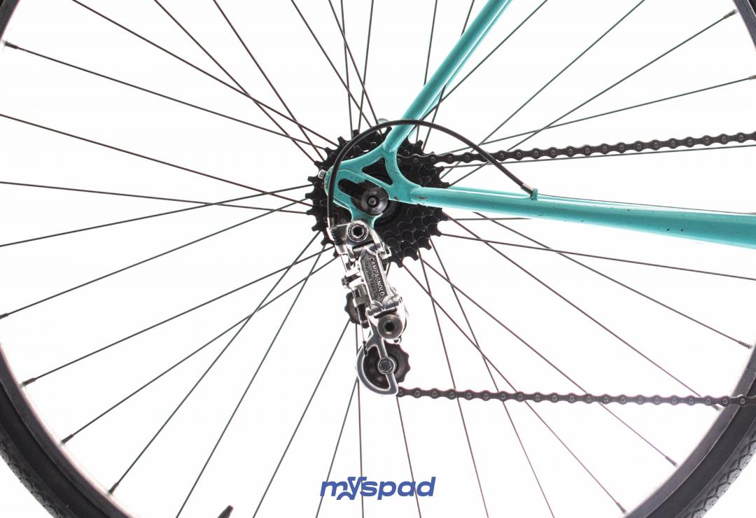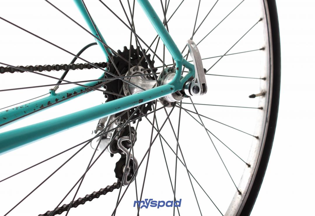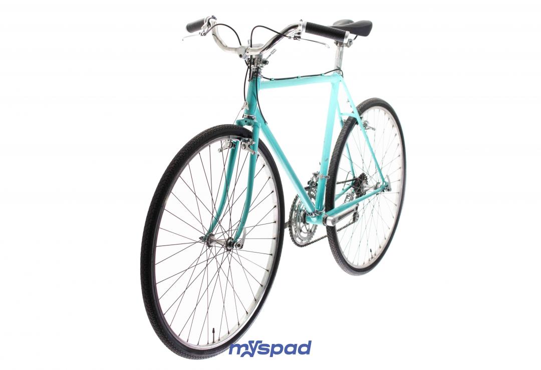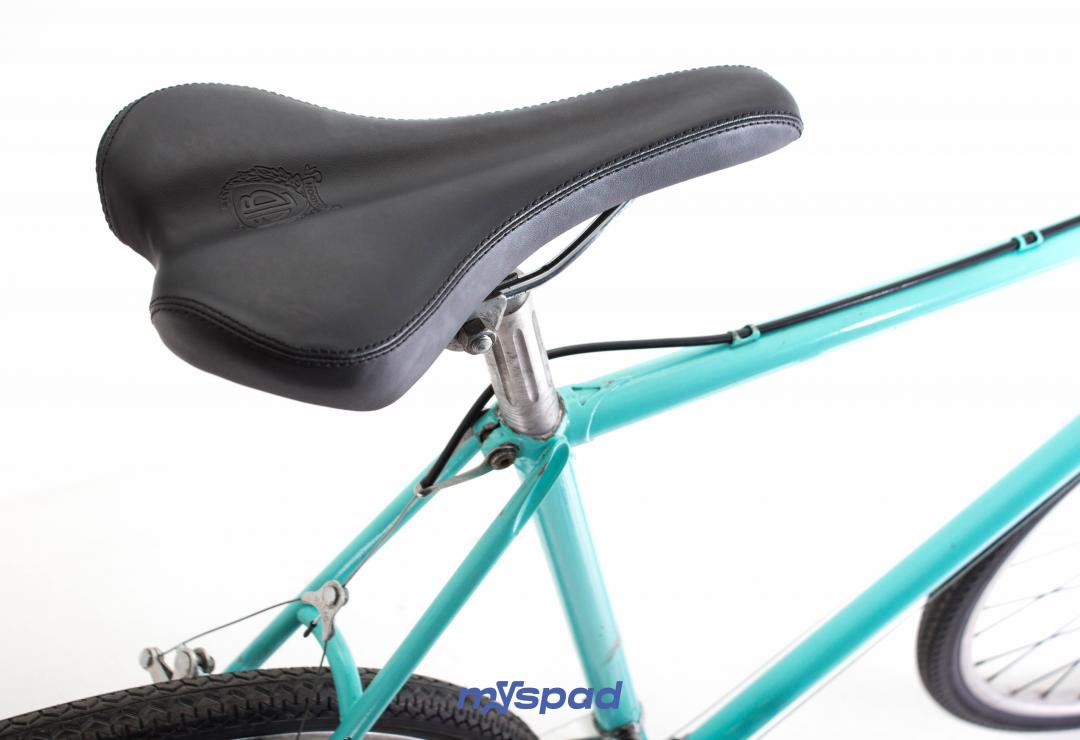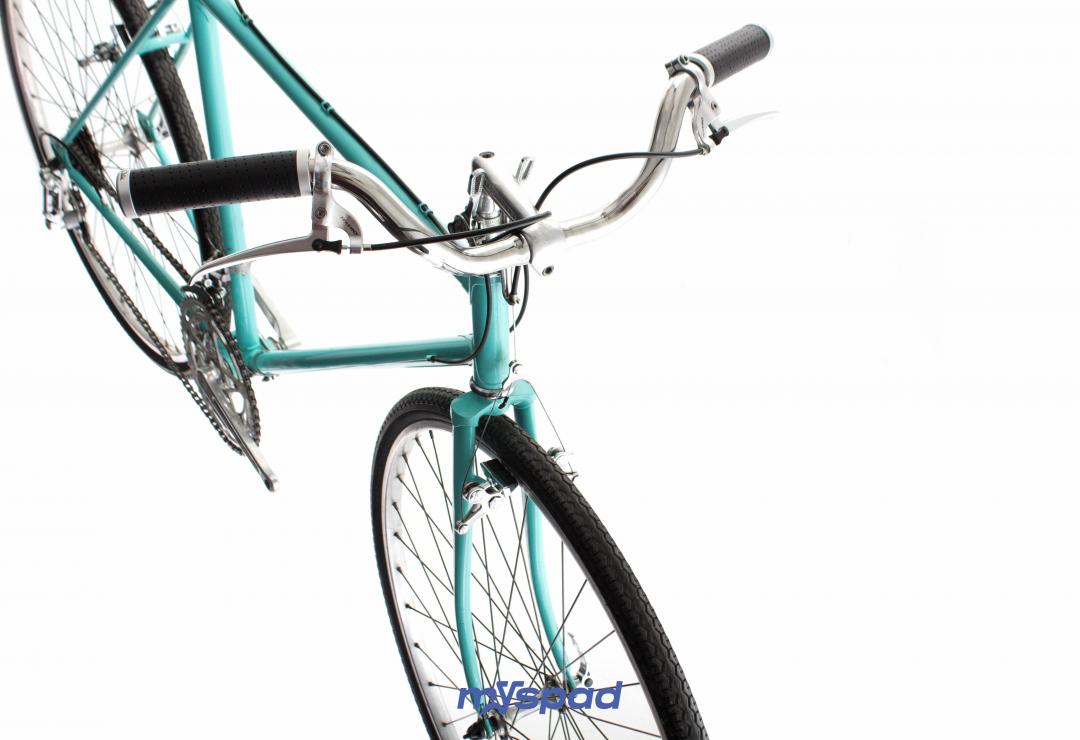 Les vélos cyclocross vintage sont des pièces rares encore en circulation. Ce modèle de marque incconu mais de confection non moins de qualité est en parfait état mécanique. Nous l'avons doté d'un riser relevé typé VTT qui relève la position et en fait un vélo parfait pour les déplacements urbains. l'empattement des haubans et fourreaux permettent de monter des pneu épais et des gardes-boue.