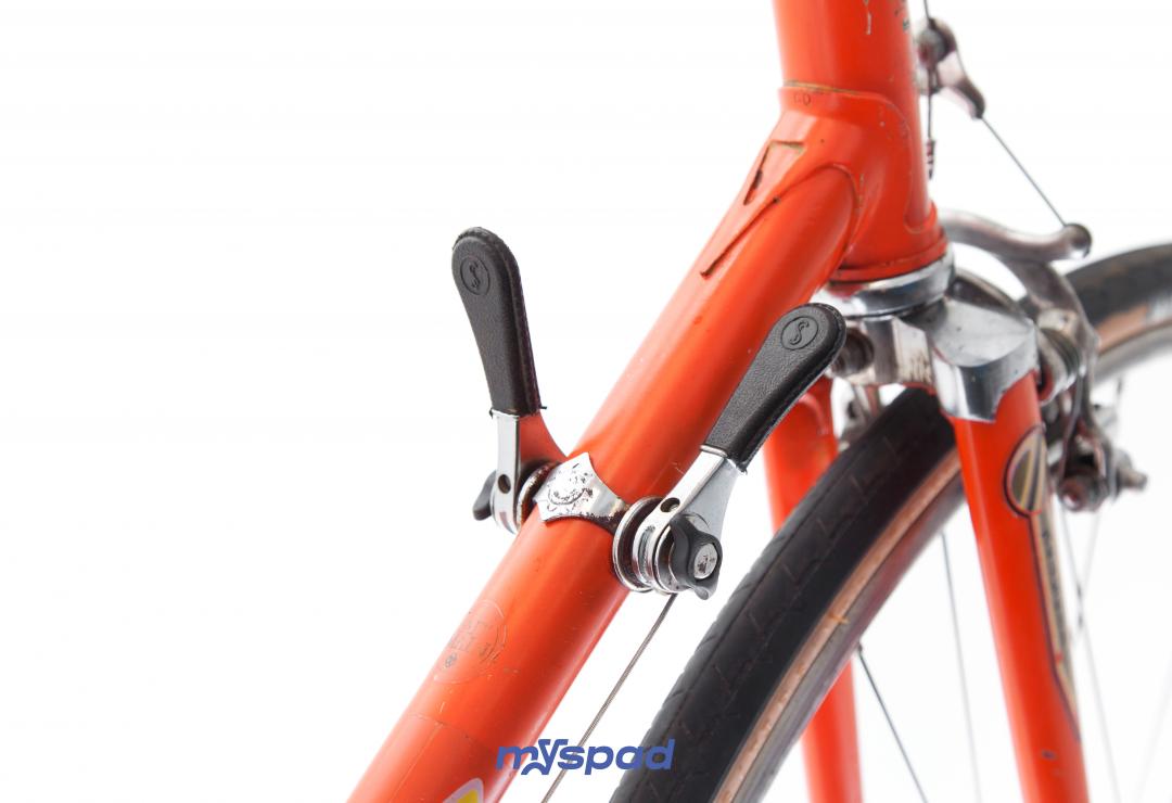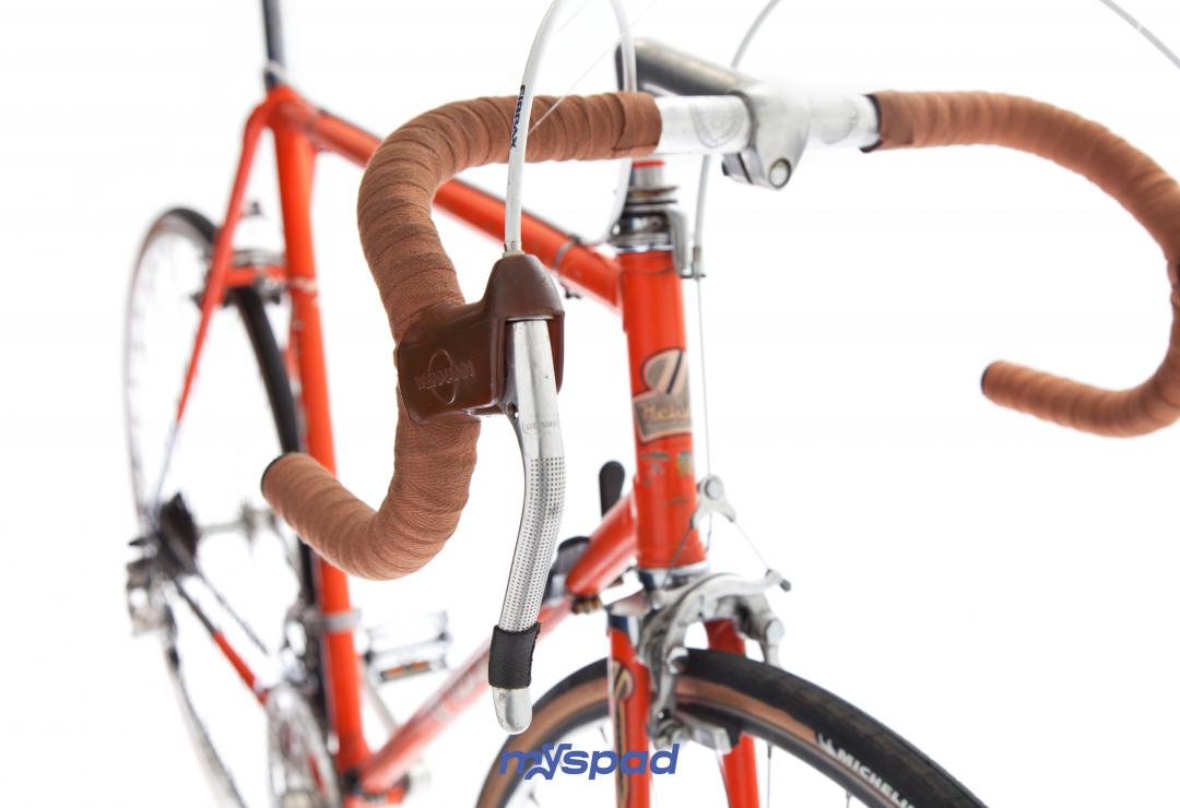 Elégant et d'origine, restauré avec goût et délicatesse. Ce Helyett a tout pour séduire. Sa guidoline vintage en coton assortis aux flans beige des pneus et ses équipements d'époques lui assurent cette classe intemporelle. Ce cadre francais, haut de gamme de sa génération avec ces subtiles raccords, ses feuilles d'oliviers pantographié aux haubans et ses pattes de dérailleur en nid d'abeille. Une selle cuir Idéale pour compléter l'ensemble. Du 95% made in France. Patte de dérailleur en nid d'abeille.