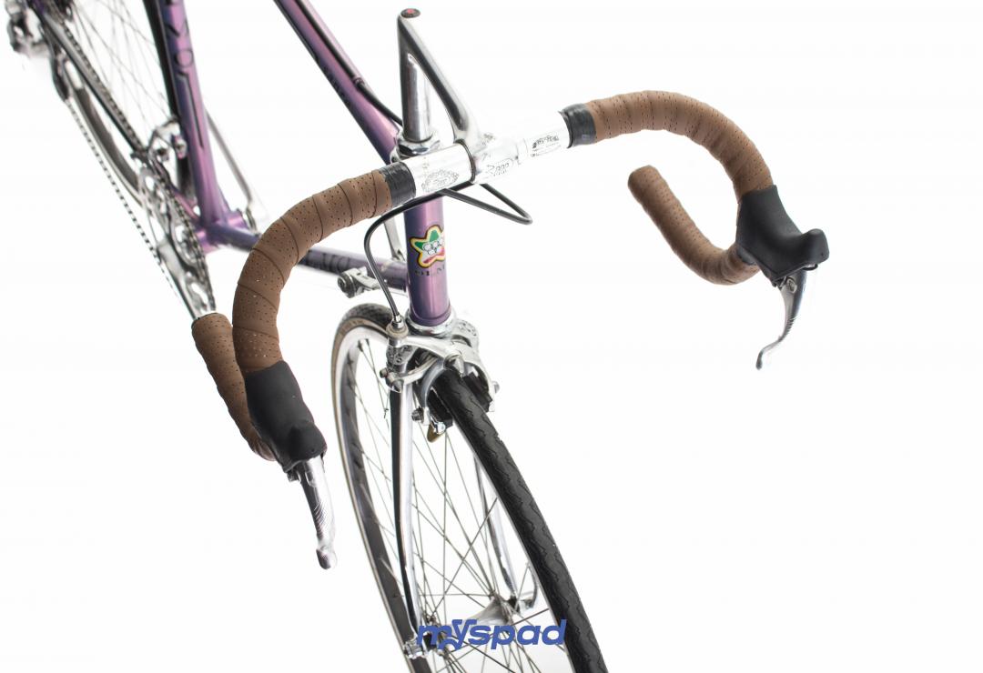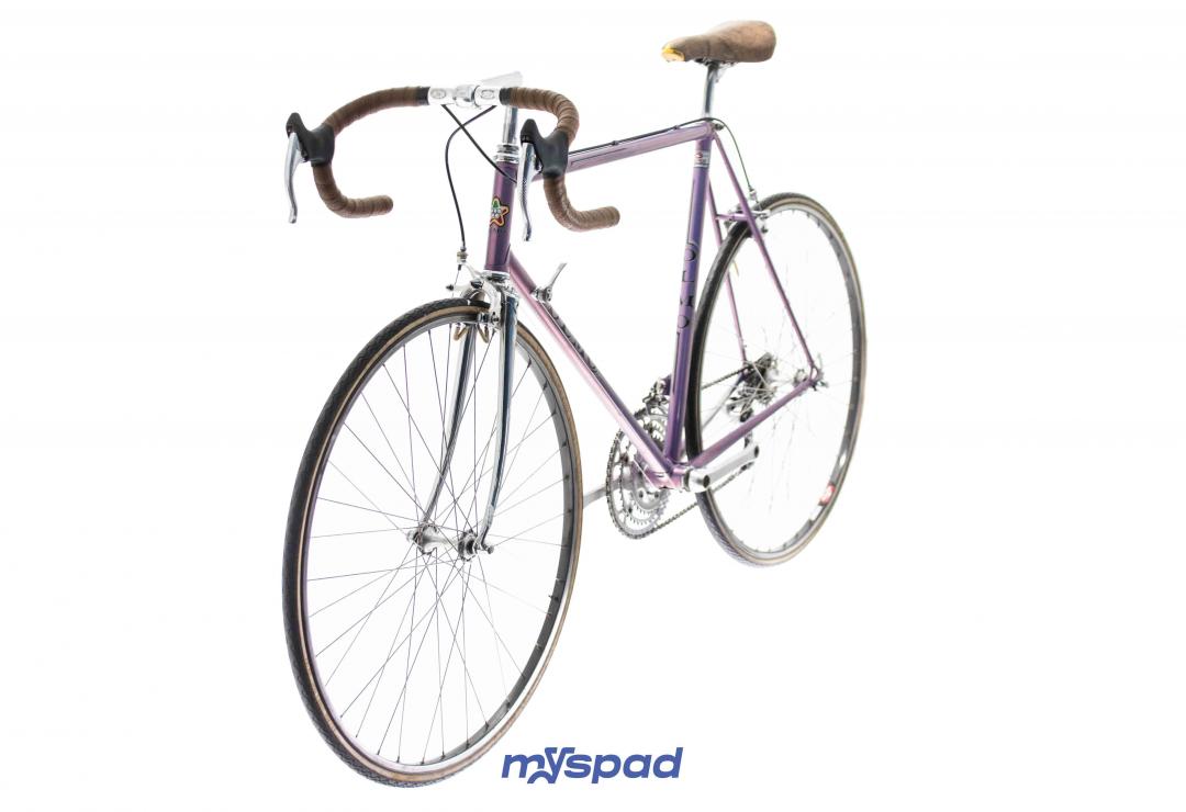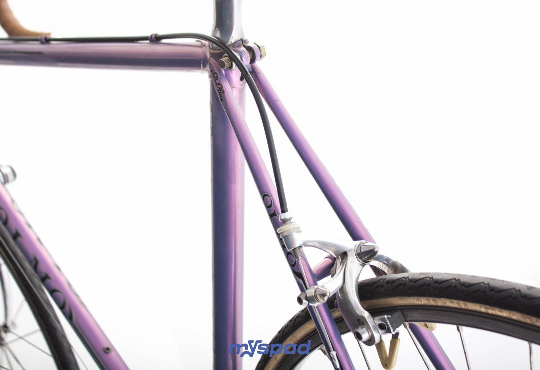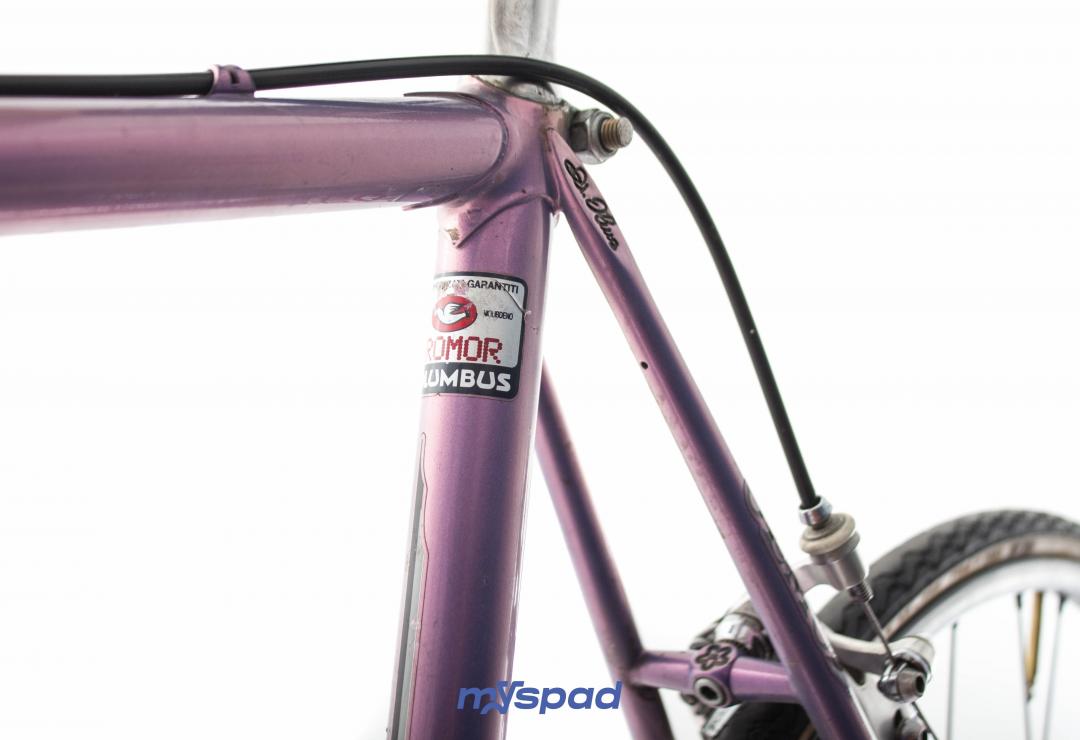 La délicatesse d'Olmo et ses raccords pantographiés les plus soignés sur ce beau modèle violet en acier Columbus.