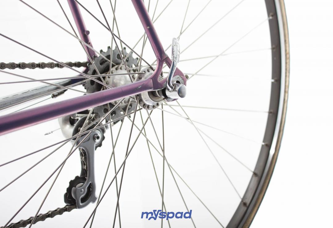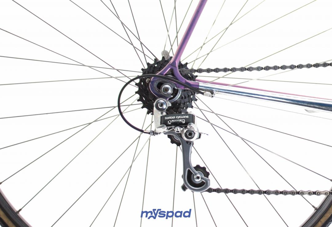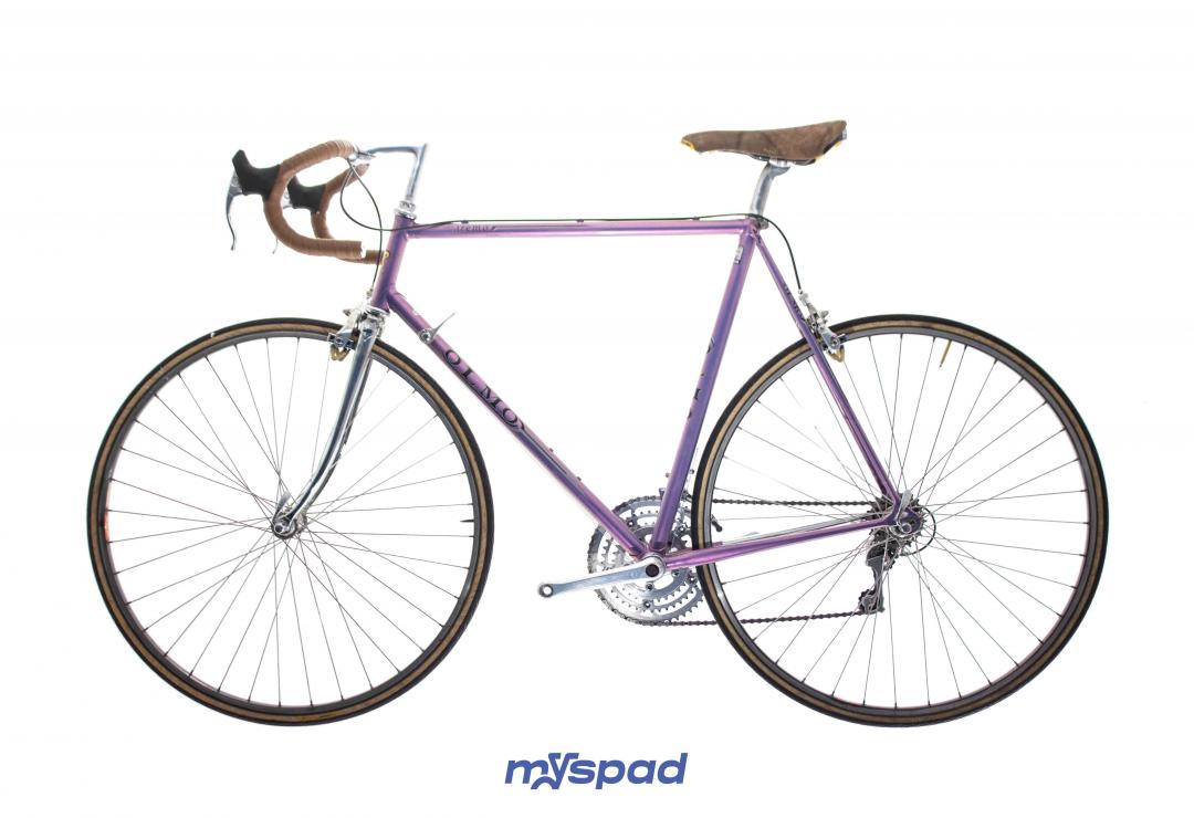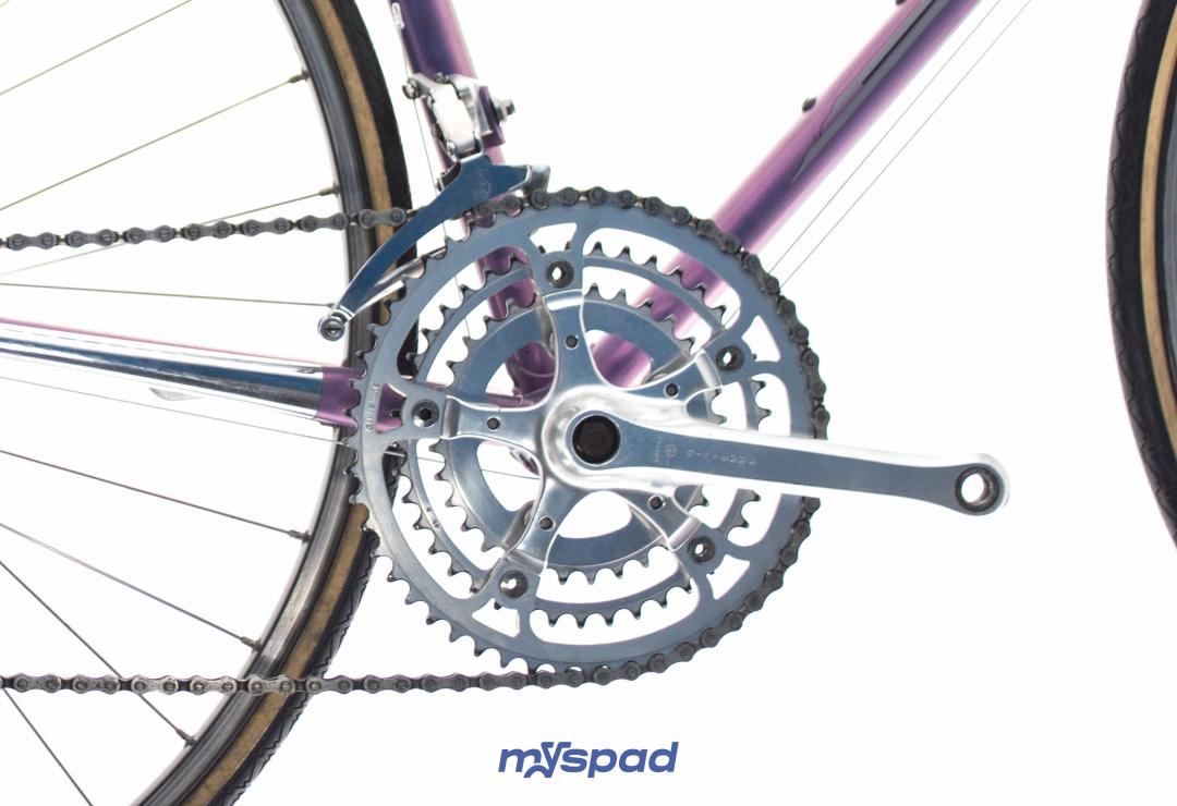 La délicatesse d'Olmo et ses raccords pantographiés les plus soignés sur ce beau modèle violet en acier Columbus.
