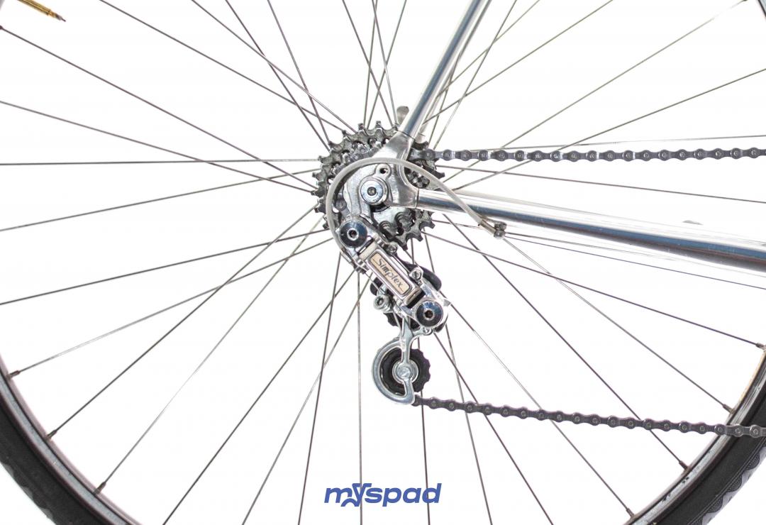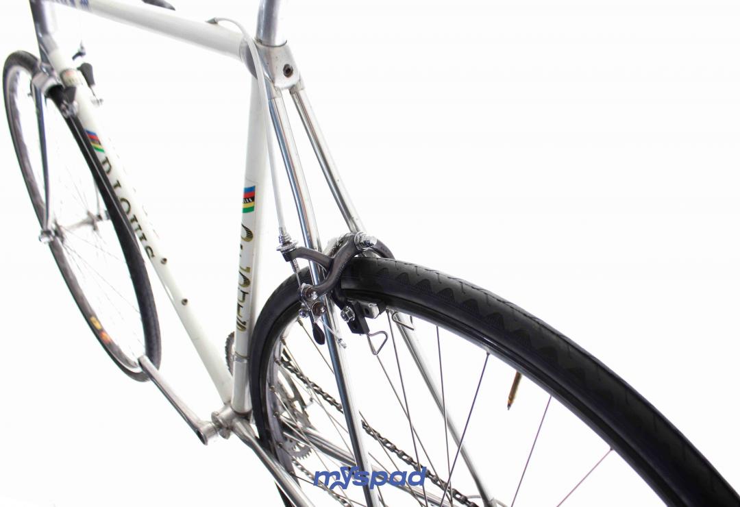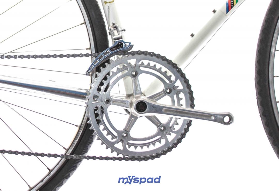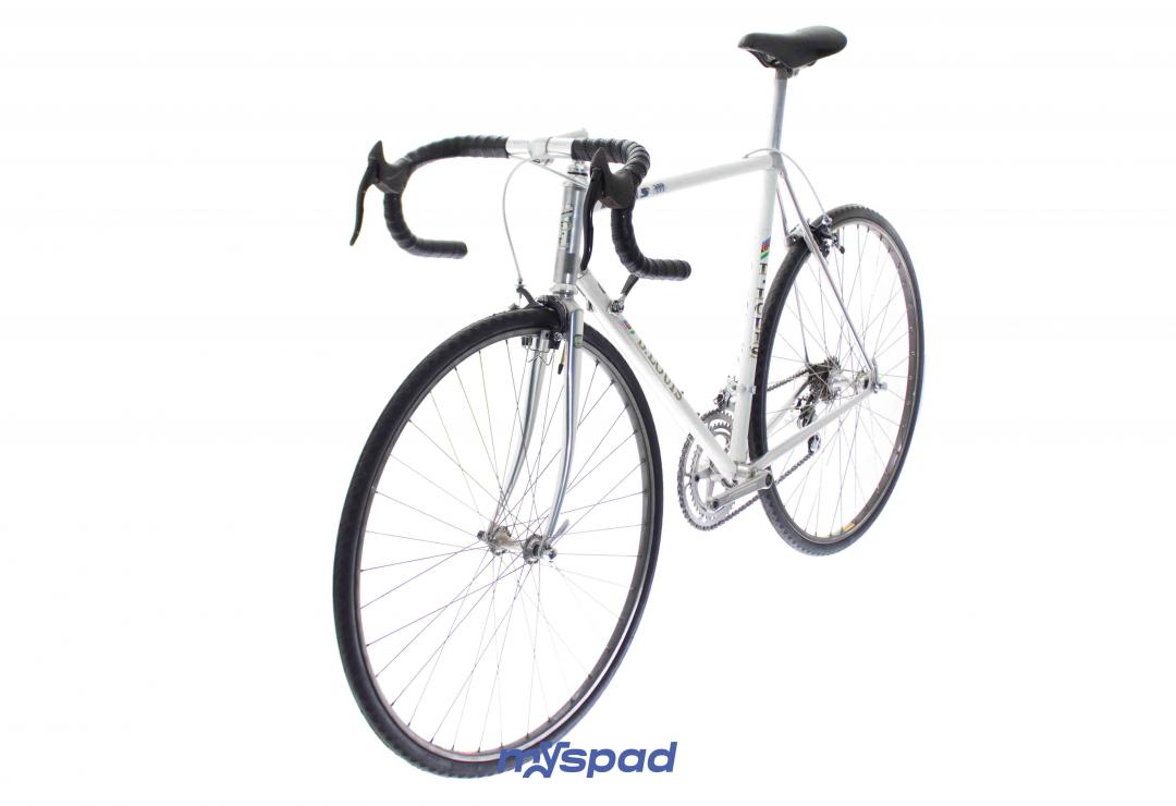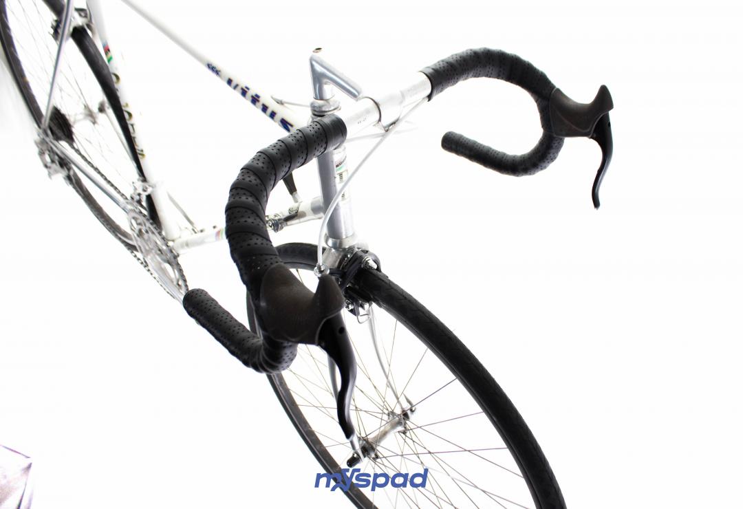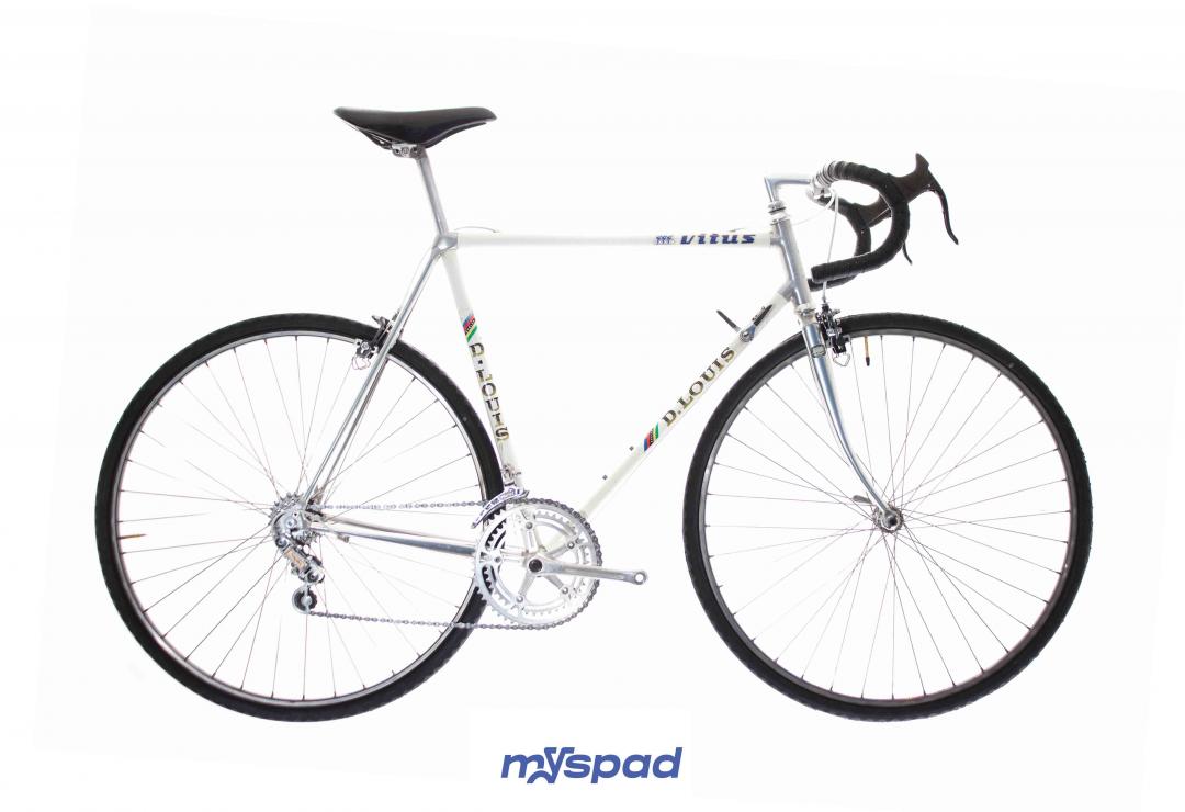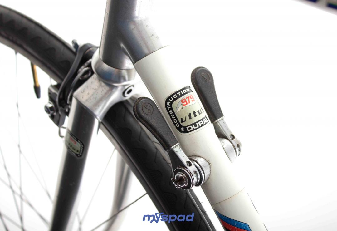 Un vitus en Dural 979 des années 80 en superbe état ! Ce vélo léger se distingue par sa sobriété en noir et blanc. Il est équipé avec le haut de gamme de l'époque, des étriers Dura-Ace édition noire et en Simplex SLJ côté transmission. Ce Vitus de Didier Louis, célèbre dans le monde du vélo, pour avoir monté une boutique de cycles puis être devenu directeur sportif de sa propre équipe comprenant notamment les frères Madiot, Thierry Marie et Evgueni Berzin. Il a ensuite racheter une usine de fabrication de vélos en carbone monobloc aux Etats Unis et a terminé sa carrière dans le monde de l'équitation. Un beau parcours, pleins de succès. Du succès, vous en ferez aussi avec ce Spad.